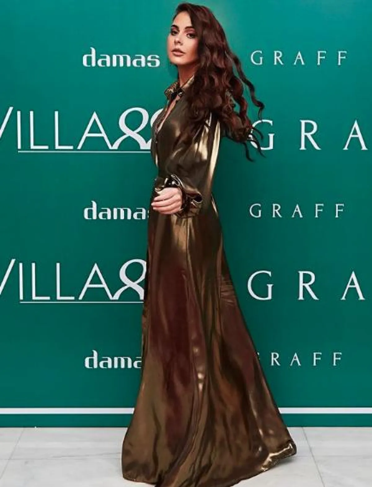 اعتمدت لانا الساحلي اطلالة عصرية لافتة في بنطلون مطاطي فضي ميتالك، ونسقت معه جيليه ميتالك أيضًا من “لويس فويتون” Louis Vuitton وأكملت اللوك بحذاء بكعب عالٍ باللون الأسود، واكسسوارات ناعمة.