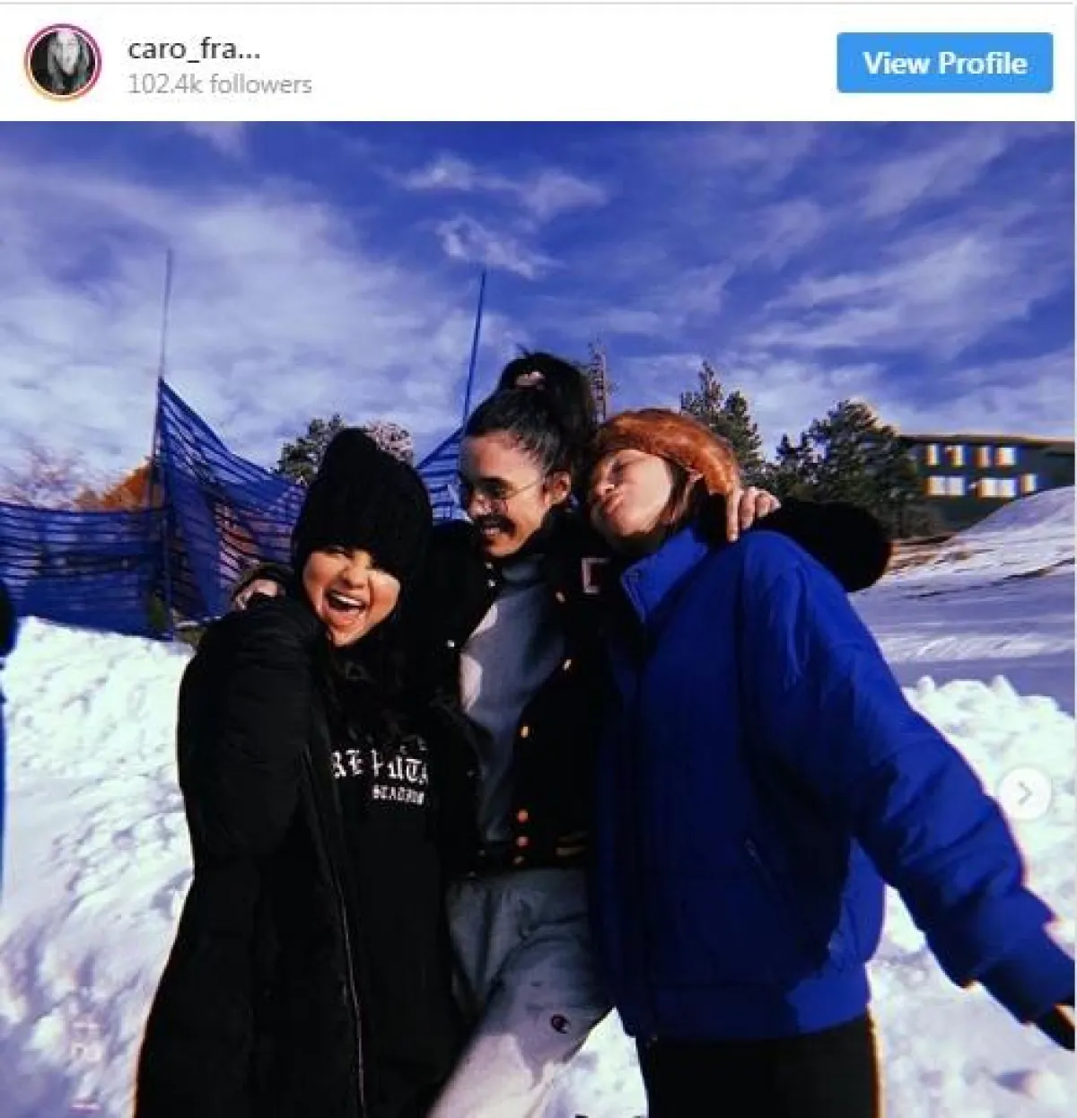 ونشرت صديقات غوميز صوراً للنجمة العالمية بعد تعافيها، وهن في إحدى المناطق الجبلية يستمتعن بالثلوج. ونشر موقع Wmagazine الأميركي صوراً لغوميز من موقع "انستقرام" تجمعها بأصدقائها.