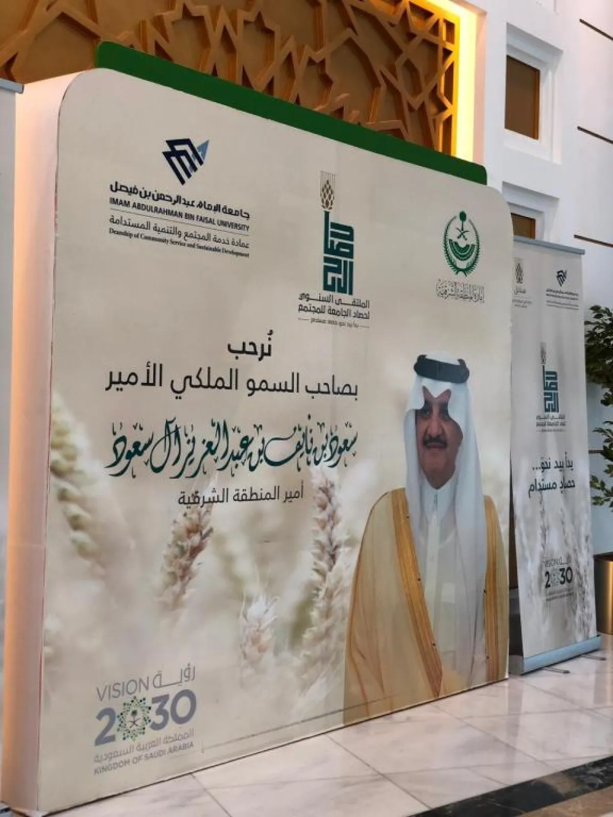 وأعلن ذلك في الملتقى السنوي الرابع لحصاد جامعة الإمام عبد الرحمن الفيصل، مؤخراً بمقر الجامعة بالدمام وبرعاية الأمير سعود بن نايف أمير المنطقة الشرقية، حيث تمّ تكريم الدكتور عبدالله الربيش المشاريع الفائزة بأعلى نسبة خدمة مجتمعية.