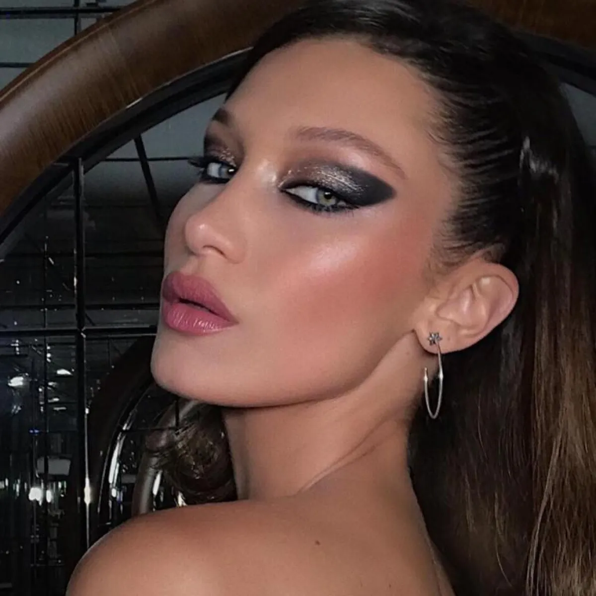 يعد المكياج السموكي من أفخم أساليب المكياج وأكثرها جمالاً، فإذا كنت تريدين الحصول على إطلالة رائعة في حفلة رأس السنة، استوحي مكياجك من عارضة الأزياء بيلا حديد، التي اعتمدت المكياج السموكي الغليتر، بحيث تستخدمين ظلال العيون الغليتر ورسمة الأيلاينر المجنح الممتد الى الحدود الخارجية للعين. كذلك، اعتمدي فيه الهايلايتر والبلاش الوردي وأحمر الشفاه الزهري اللامع.