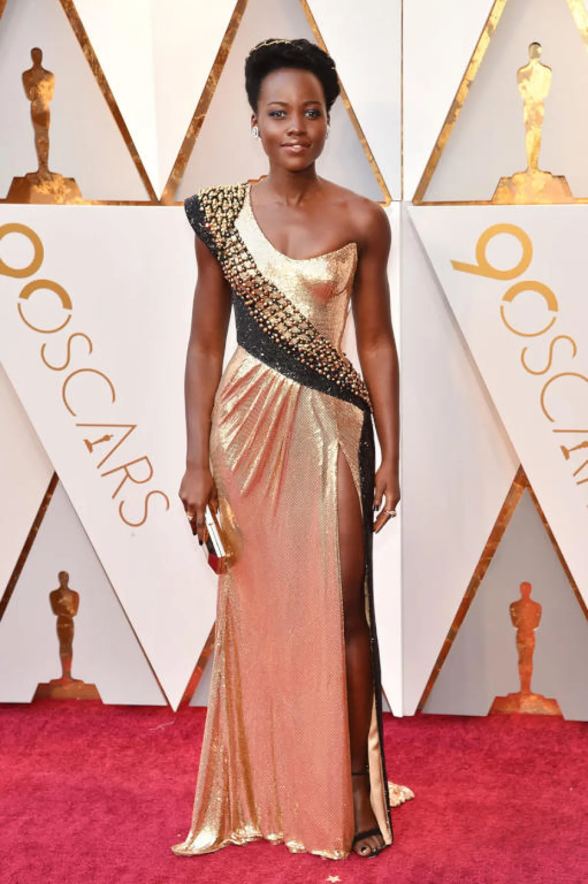 Lupita Nyongo في فستان ذهبي من Versace