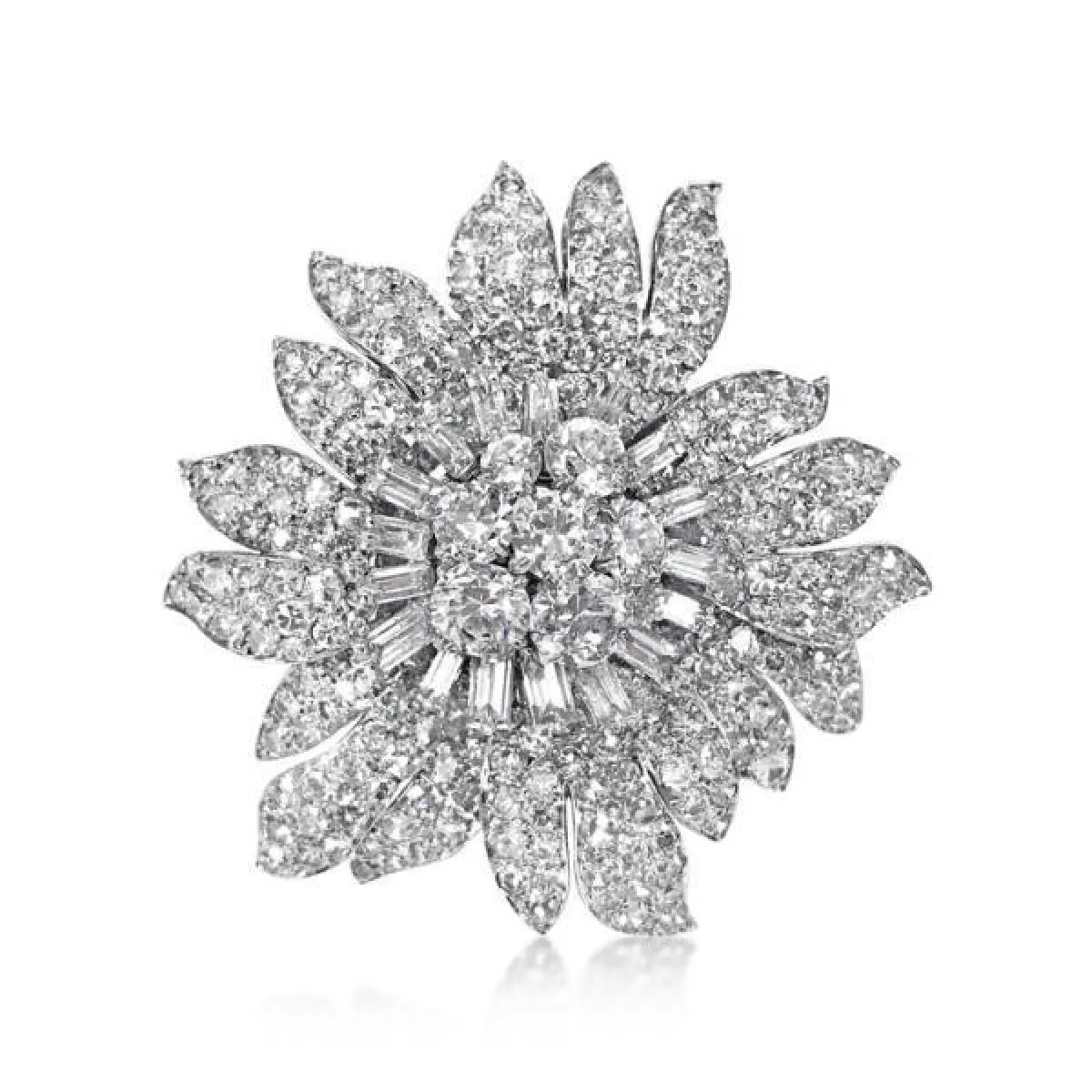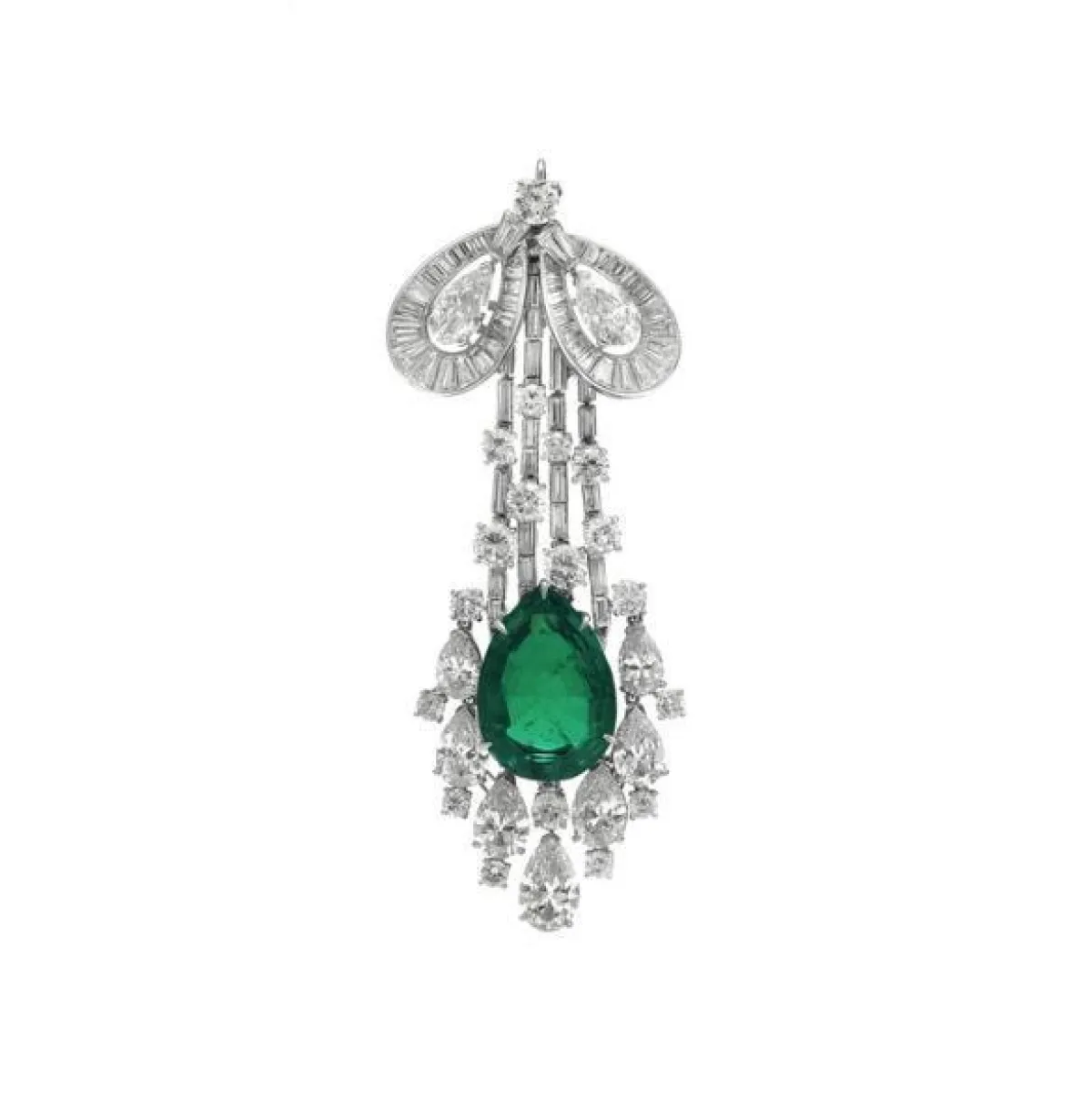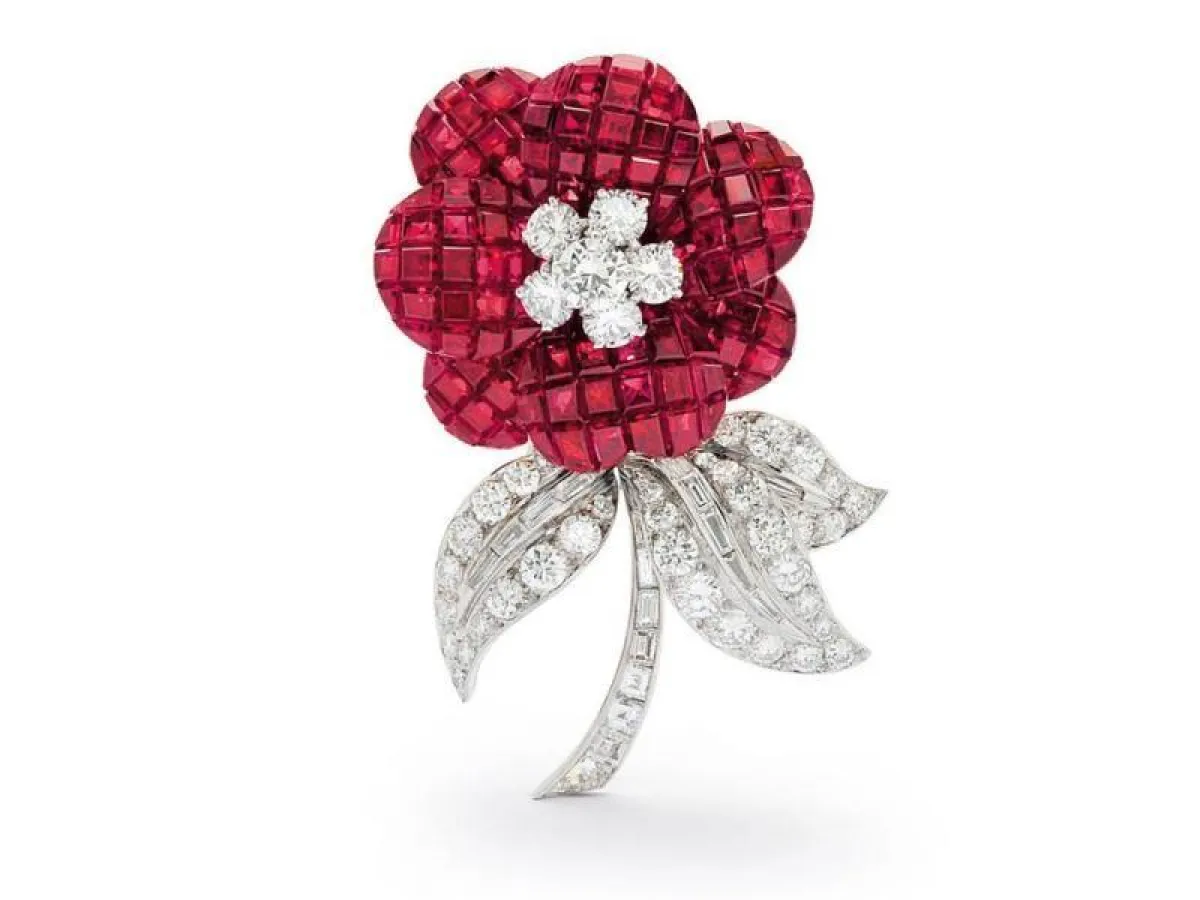 ولا يشترط أن يكون البروش مرصعًا بالألماس الأبيض فقط، بل يمكن أن يتزين ببعض الفصوص الملونة، لتضيف لمسة حيوية للفستان، مثل دبابيس هاري وينستون Harry Winston التي يتناغم فيها الألماس والزمرد الأخضر.