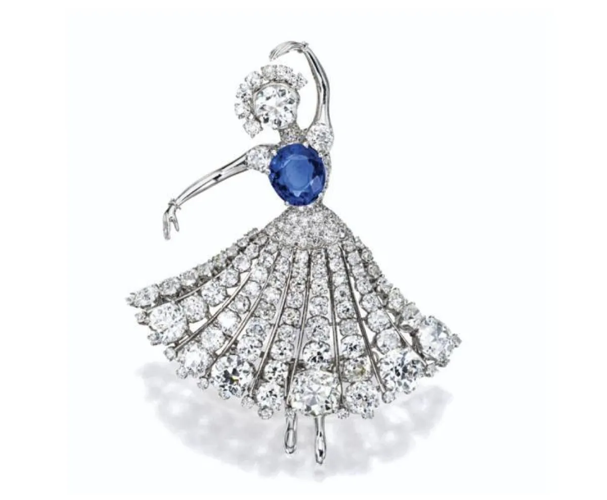 كذلك أبدعت دار فان كليف آند آربلز Van Cleef & Arpels تصاميم مميزة من الدبابيس المستوحاة من الأميرات، والمرصعة بالفصوص الزرقاء مع الألماس.