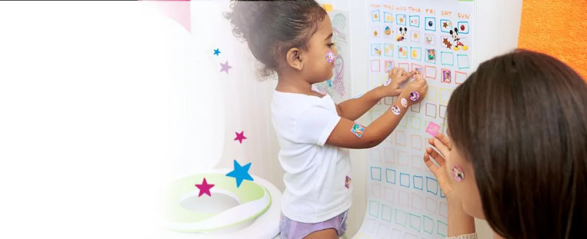 3. قومي بتحضير ورقة، ارسمي عليها جداول ملونه بحيث يكون كل جدول يحتوي على عدد أيام الأسبوع لتكون هذه الورقة مدتها أسبوعين ثم احضري لها ملصقات على شكل نجوم، ضعي هذه الورقة على باب الحمام ووضحي لطفلك بأن هذه الورقة خاصة به وأن اليوم الذي سوف يدخل فيه الحمام كلما احتاج سوف تجعليه يقوم بإلصاق النجمة في الخانة المخصصة لها واصطحبي الحديث بالثناء والمدح والتقبيل، بهذه الطريقة تجعلي الحمام متعة لديه وليس إلزام.