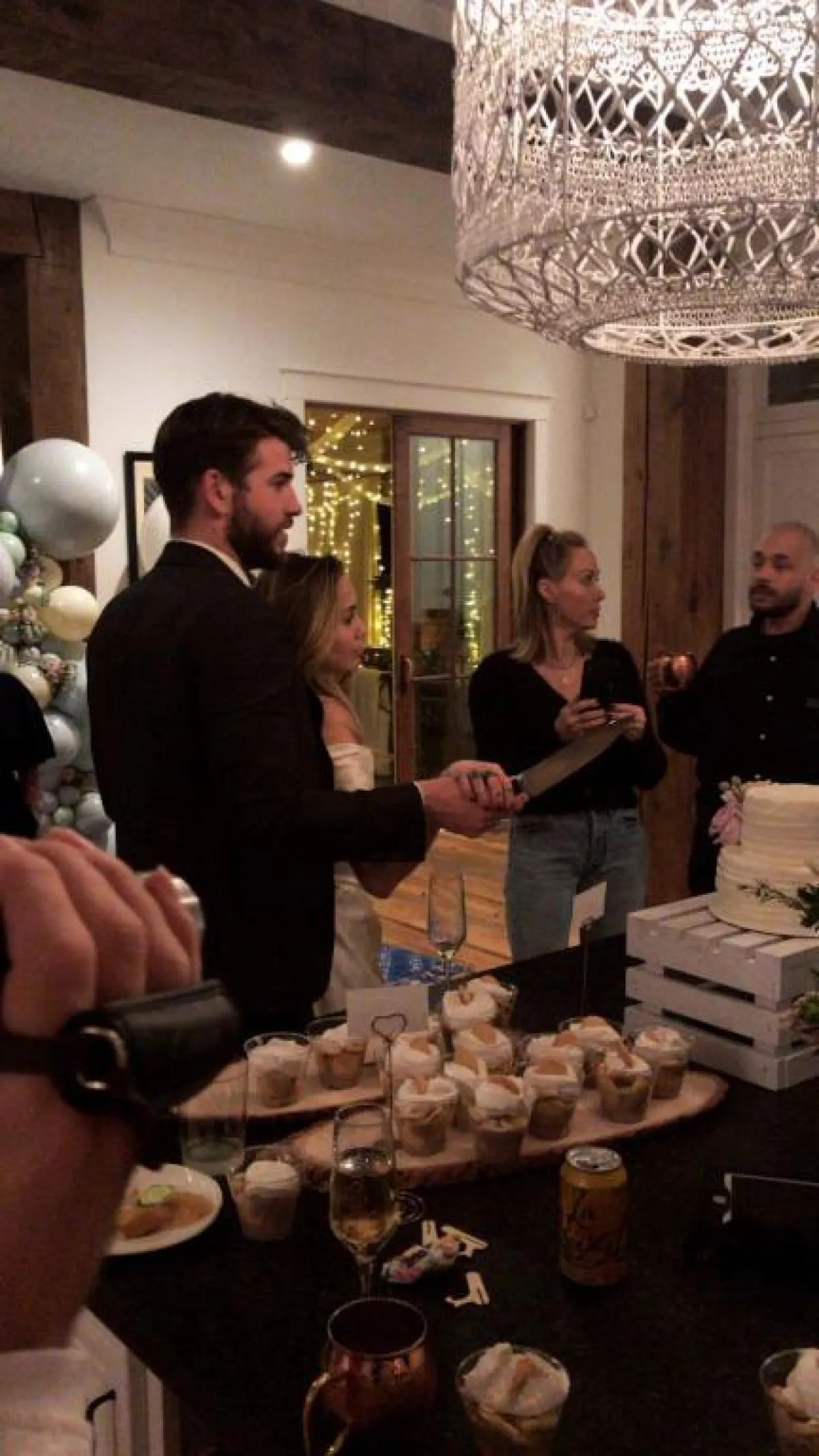 وتداول جمهور مايلي وليام بعض الصور من أجواء الإحتفال، التي قيل إنها من حفل الزفاف، حيث ظهرت سايرس وهي ترتدي ثوباً ابيض اللون، بينما ارتدى ليام يرتدي بدلة رسمية وهما يستعدان لقطع قالب الحلوى.
