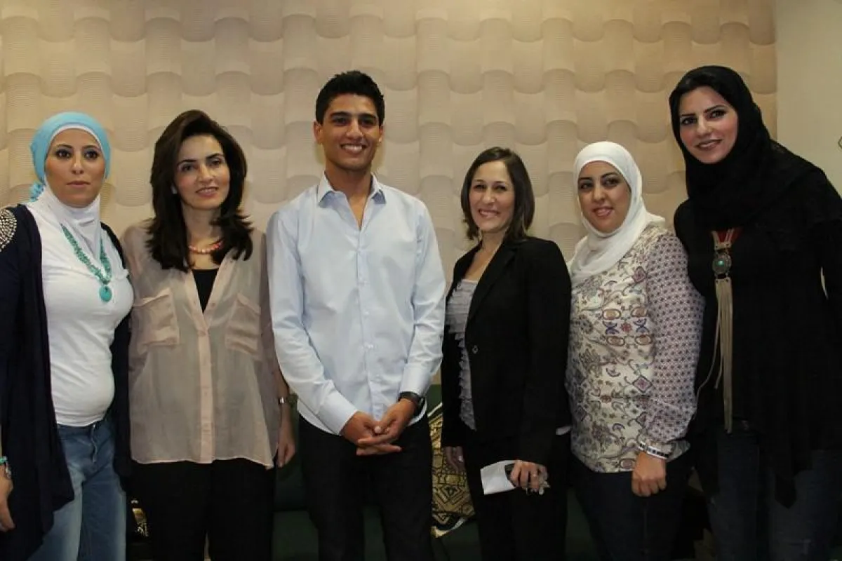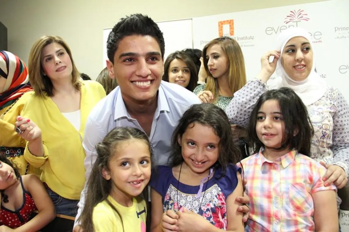 وقد أمضى الفنّان الشاب ضعف وقت المؤتمر الصحافي في التقاط الصور مع موظّفي المؤسسة وأطفالهم. وبالرغم من كونه سفير النوايا الحسنة في وكالة الأنروا الدوليّة، واختارته مؤسسة الأميرة تغريد لتنمية الفنون والحرف الخيرية سفيرَ فئة الأيتام ومجهولي النسب، إلا أنّه لم يقم ـ بذريعة المرض ـ كما كان متوقعاً منه بجولة في أرجاء المؤسّسة.