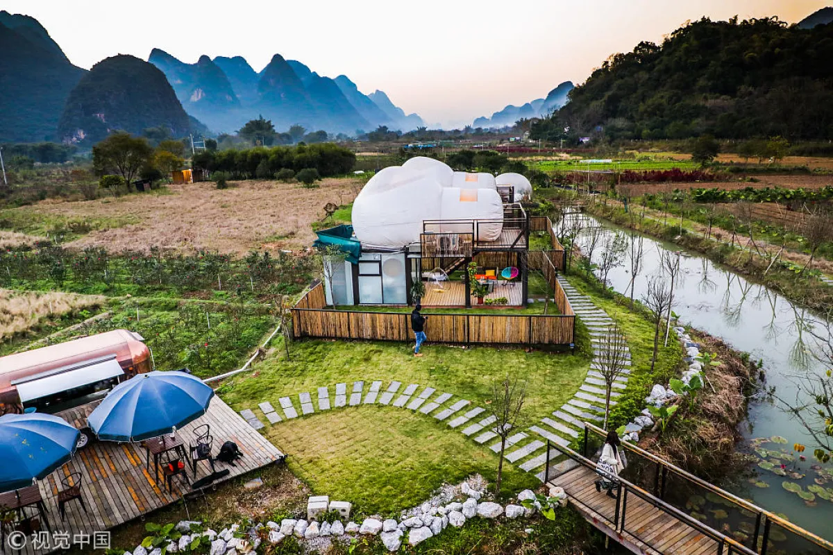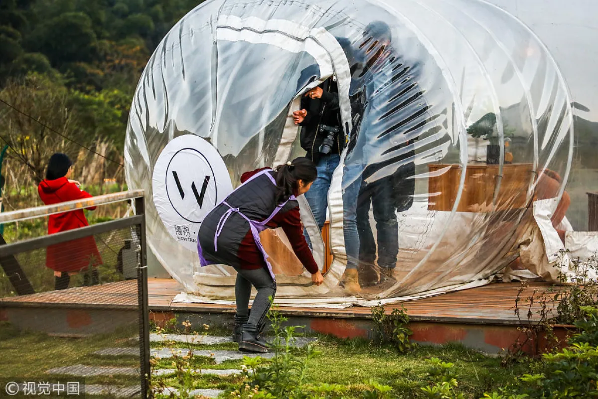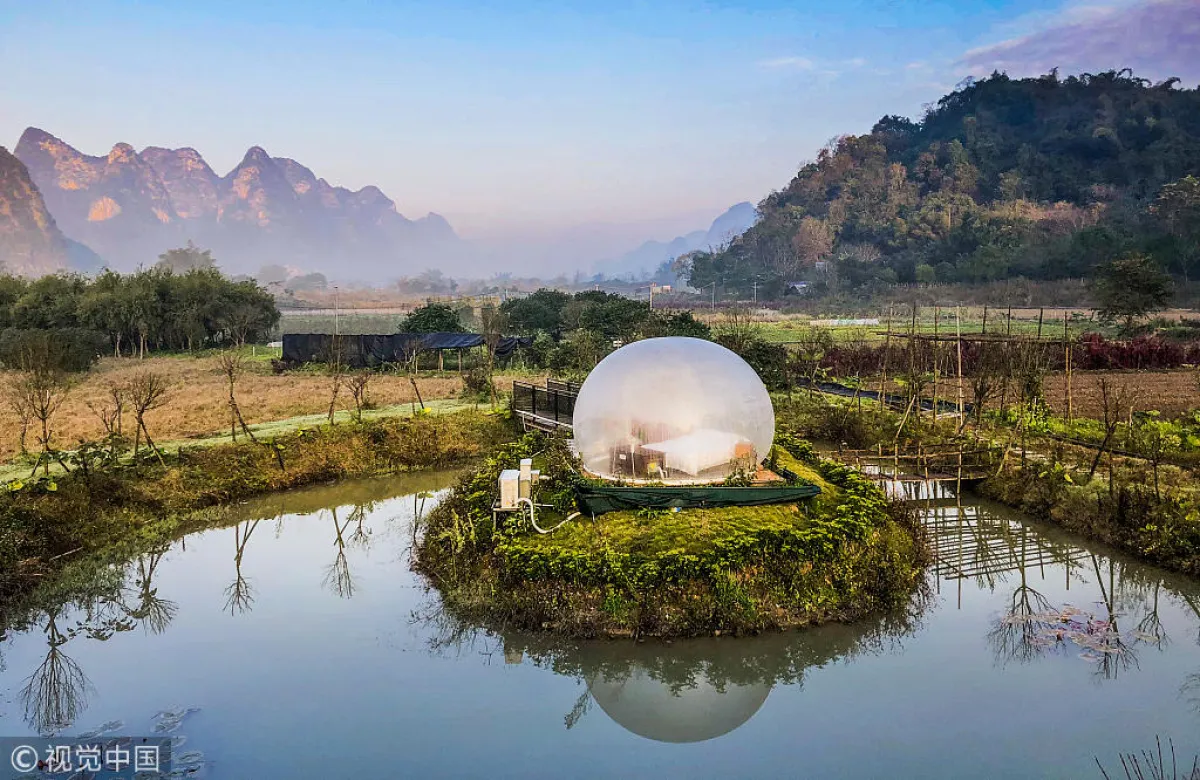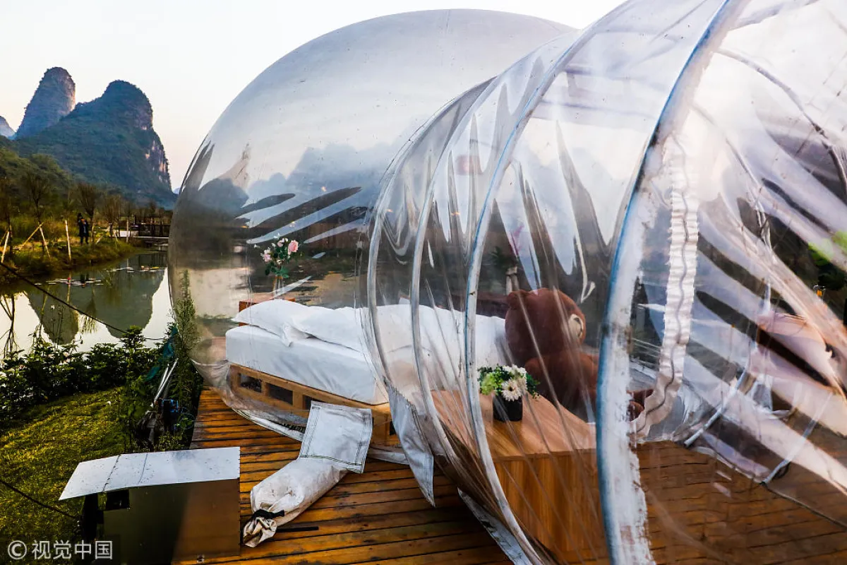 ابتكر أحد رجال الأعمال بالصين إنشاء فندق من طراز فريد من نوعه، مصنوع كفقعة هوائية.