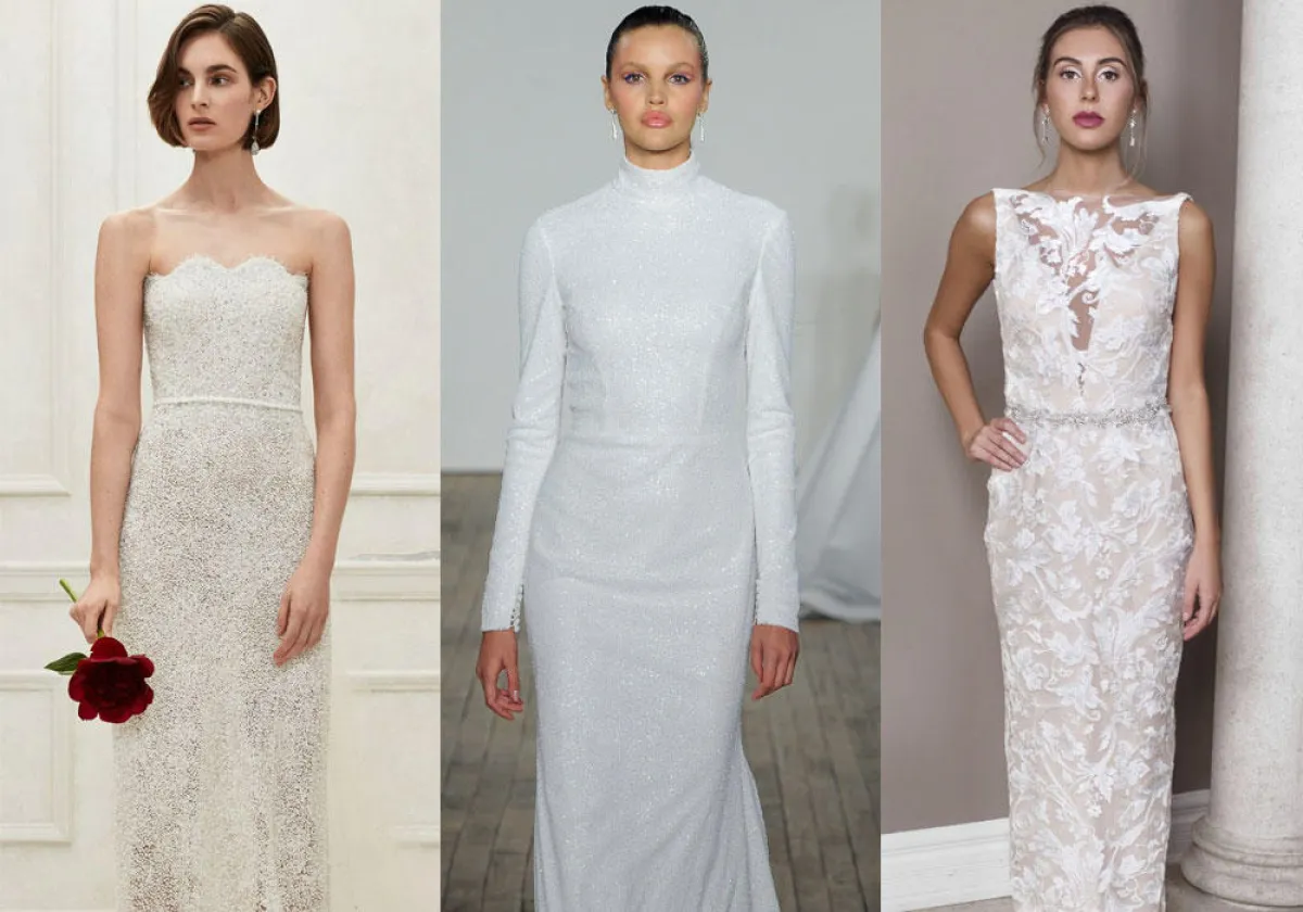 كما تتناسب فساتين الزفاف البسيطة بالقصّات العمودية Sheath مع حفلات الزفاف النهارية وفي الأماكن المفتوحة.