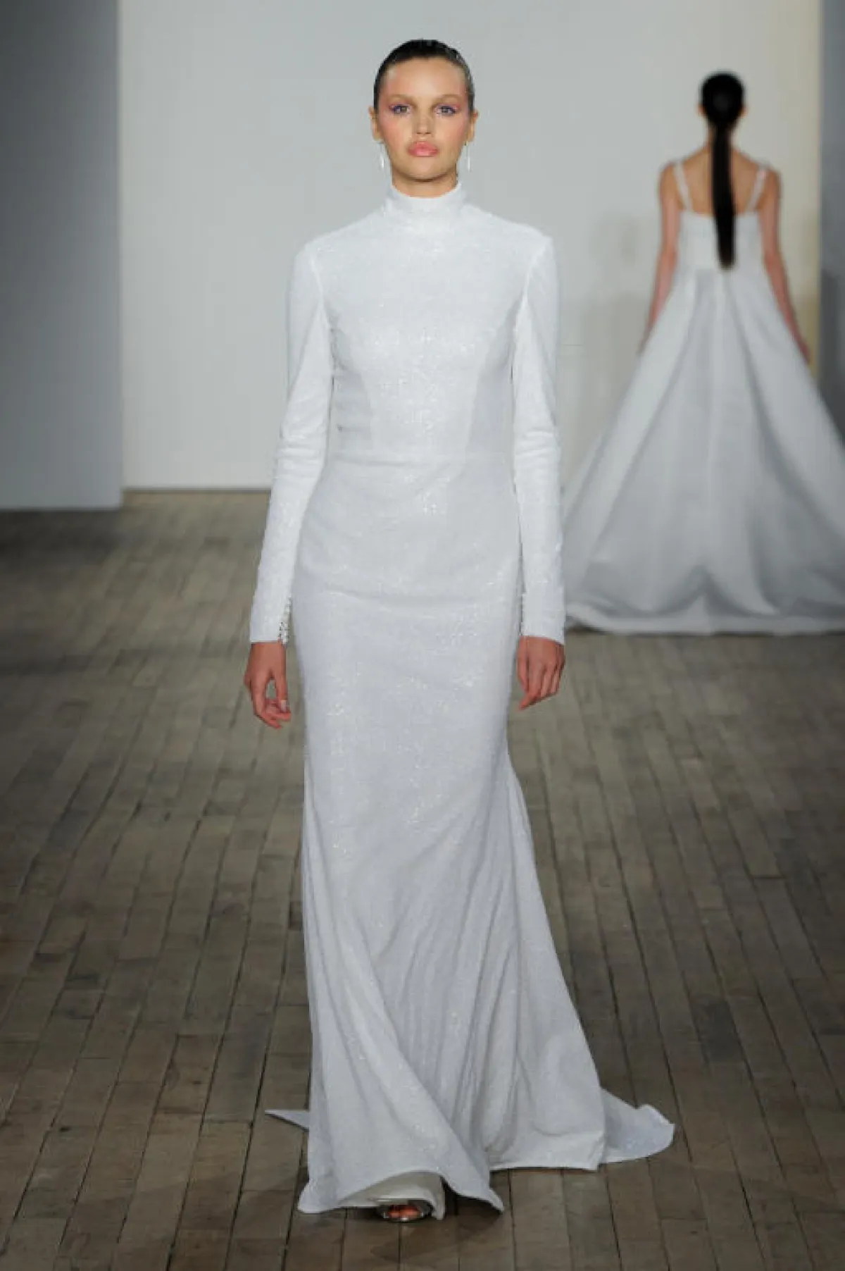 قدمت بعض الماركات فساتين زفاف ناعمة بقصّات محتشمة تناسب العروس المحجبة، مثل فساتين ثيا Theia، وأليسون ويب Allison Webb.