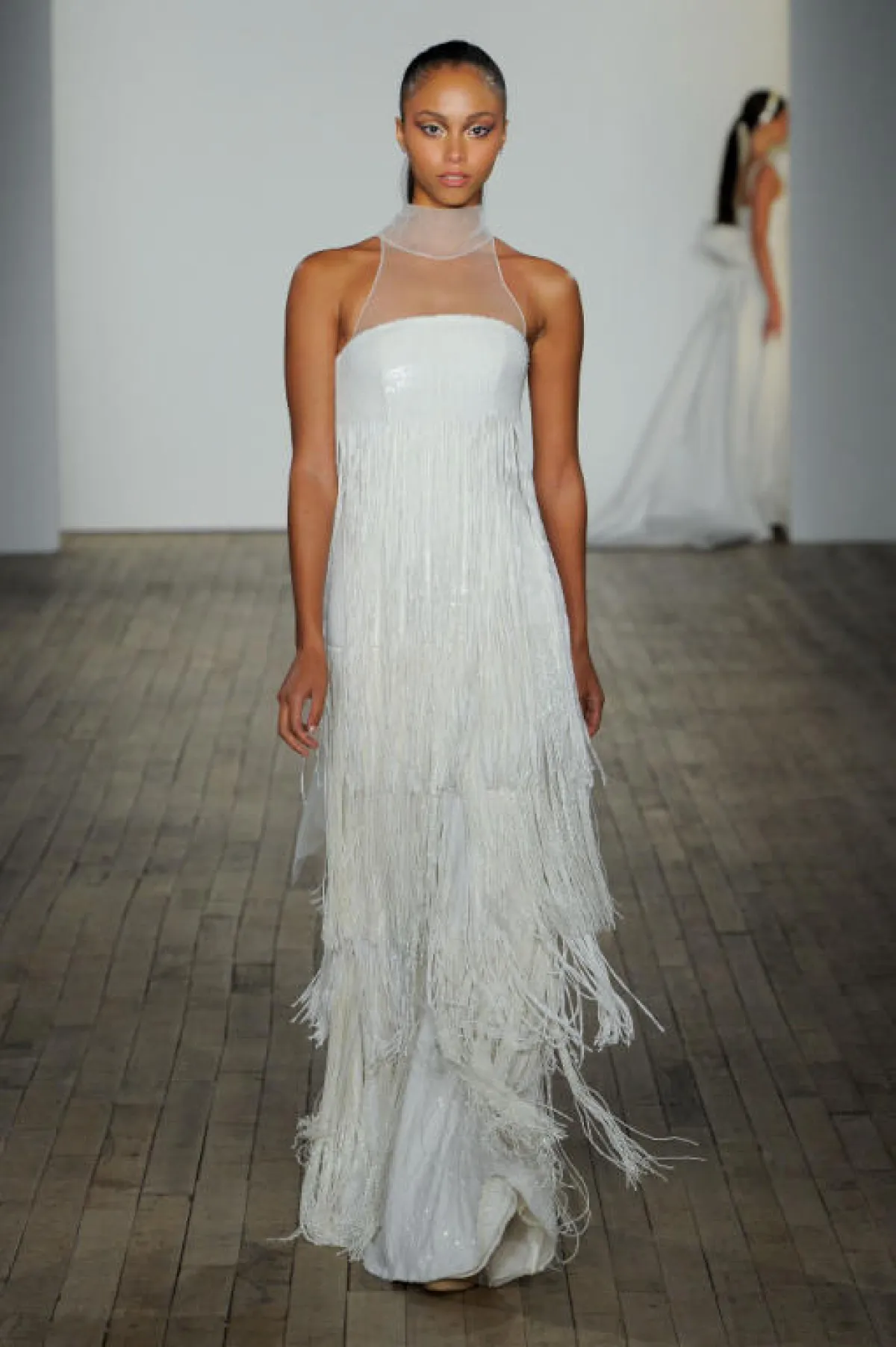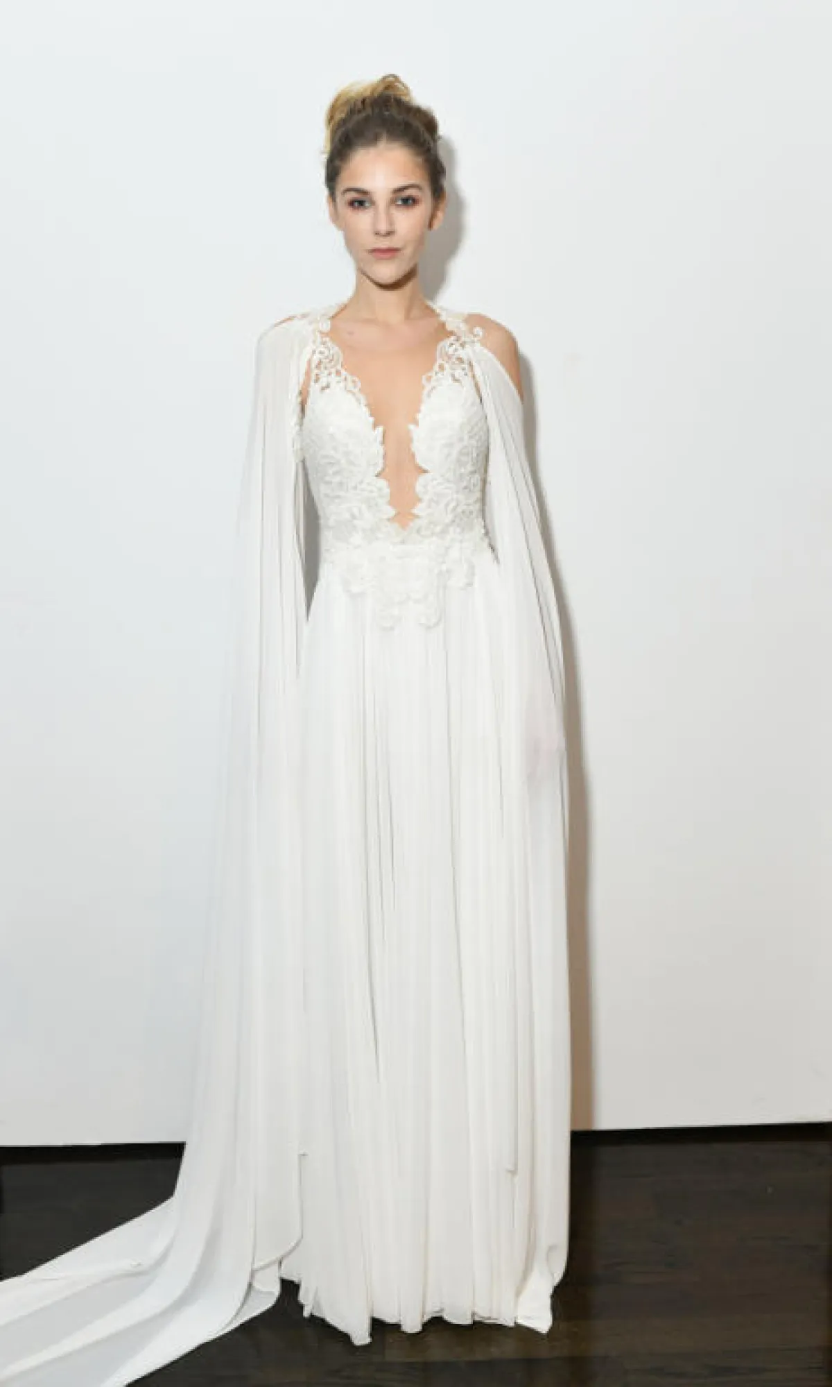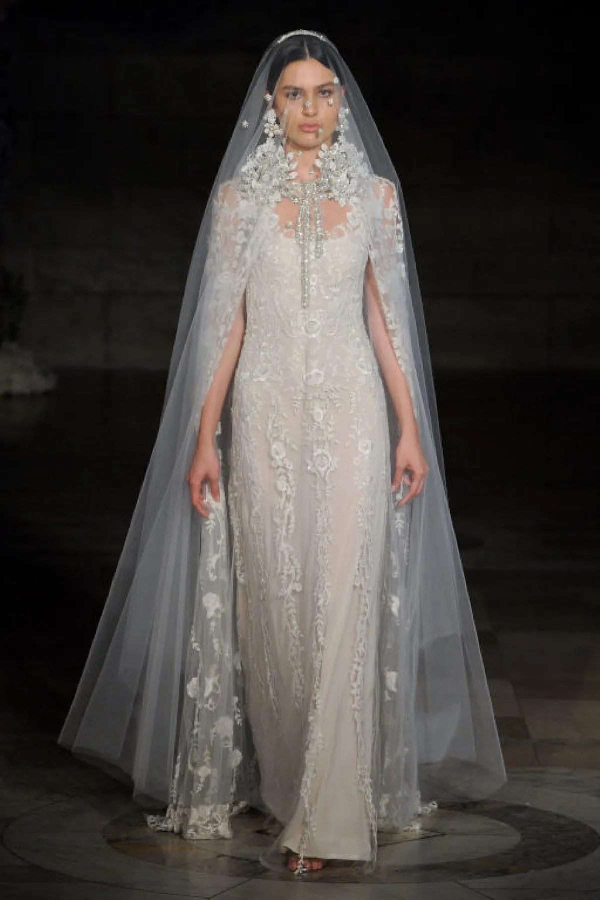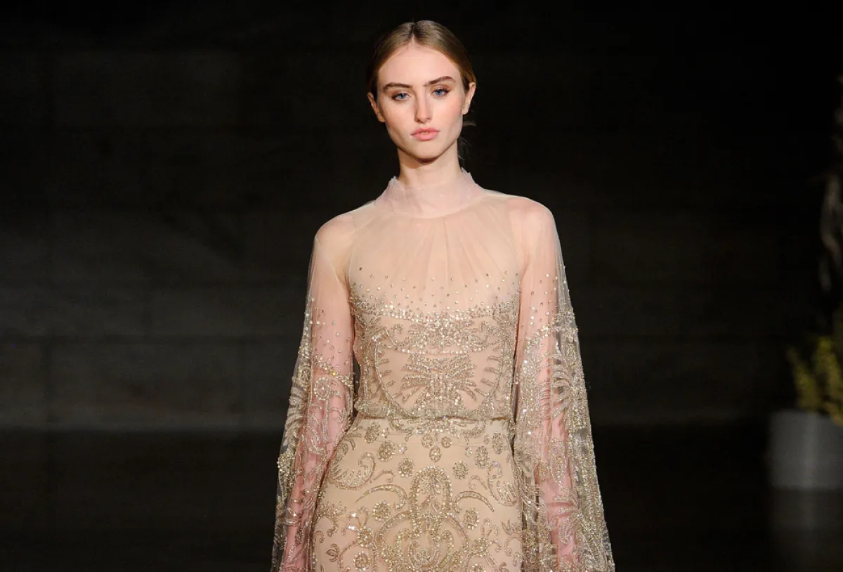 وقدمت المصممة اللبنانية ريم عكرا Reem Acra فساتين بسيطة بصيحة الكاب Cape Dress المثالية للعروس العربية، حيث تمنحها إطلالة راقية، وتزينت الفساتين بالتطريزات البرّاقة لمزيد من الفخامة.
