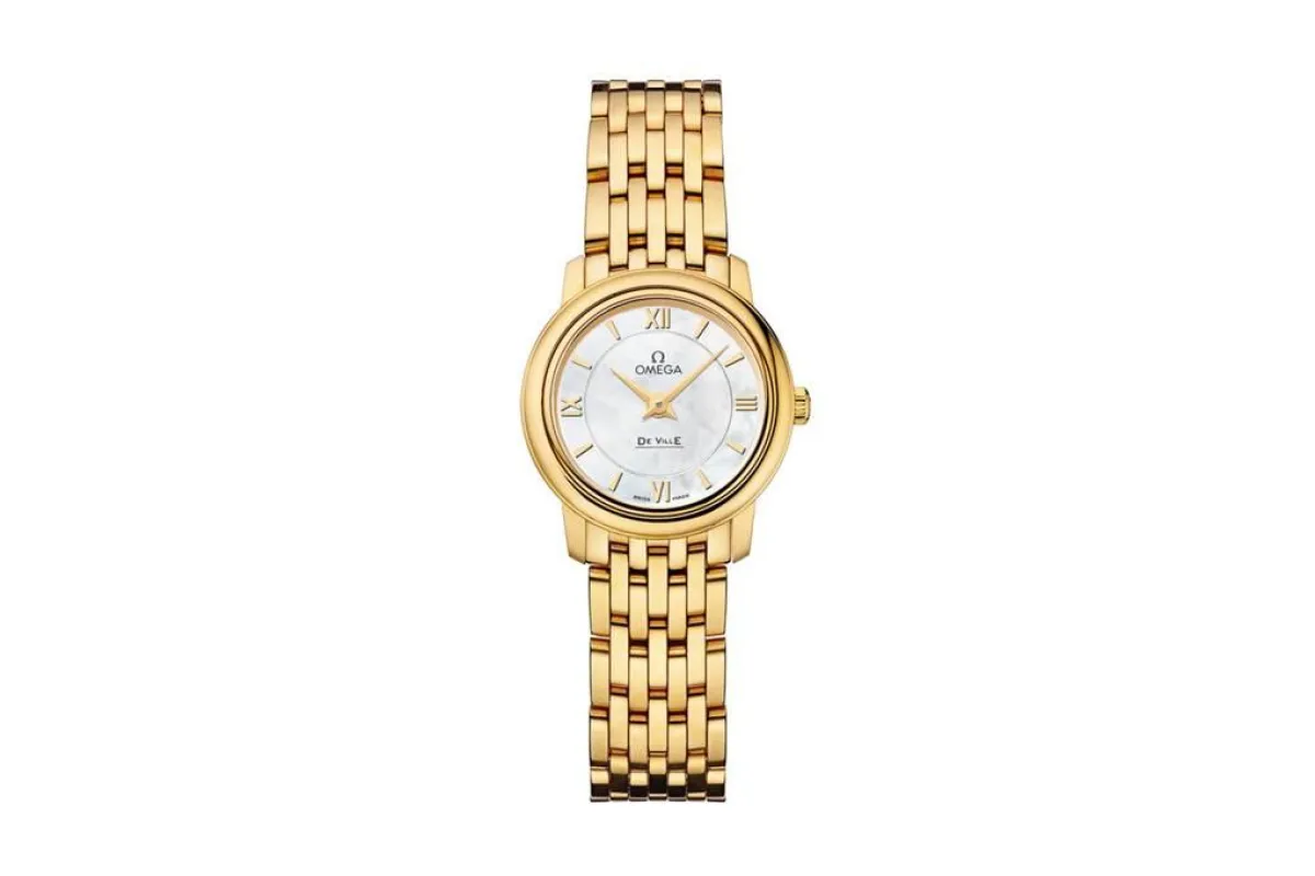 اللون الذهبي من التصاميم المفضلة أيضًا للكثير من الصبايا، يمكنكِ اعتماد المعصم العريض مع الأحجار المرصعة بشكل مستقيم متباعد، كالموديل من ساعة ذهبية من Buccelati.