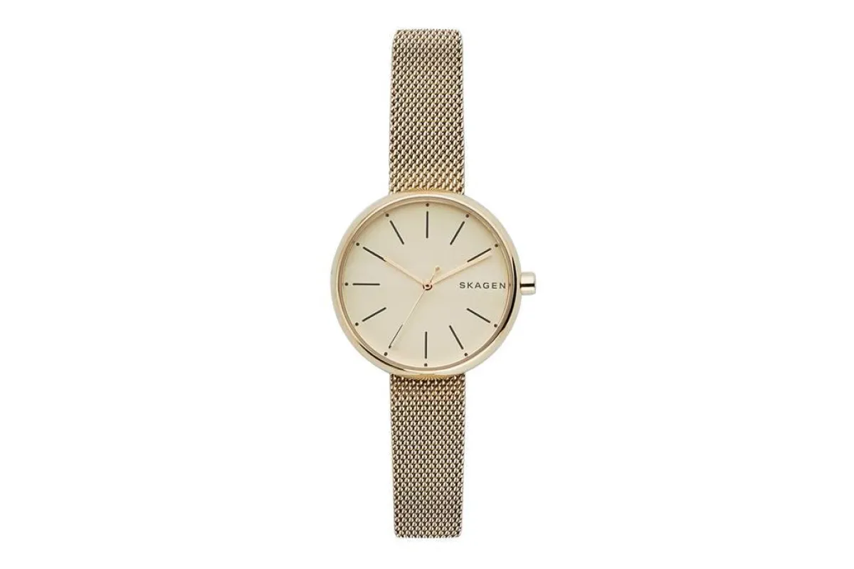 أو اختاري المعصم الرفيع من دون أحجار مرصعة، لمن تبحث عن اطلالة بسيطة، وتناسب أكثر إن كان فستانكِ فخمًا للغاية، فلن تحتاجي معه للكثير من التفاصيل كالساعة النحاسية من Skagen.