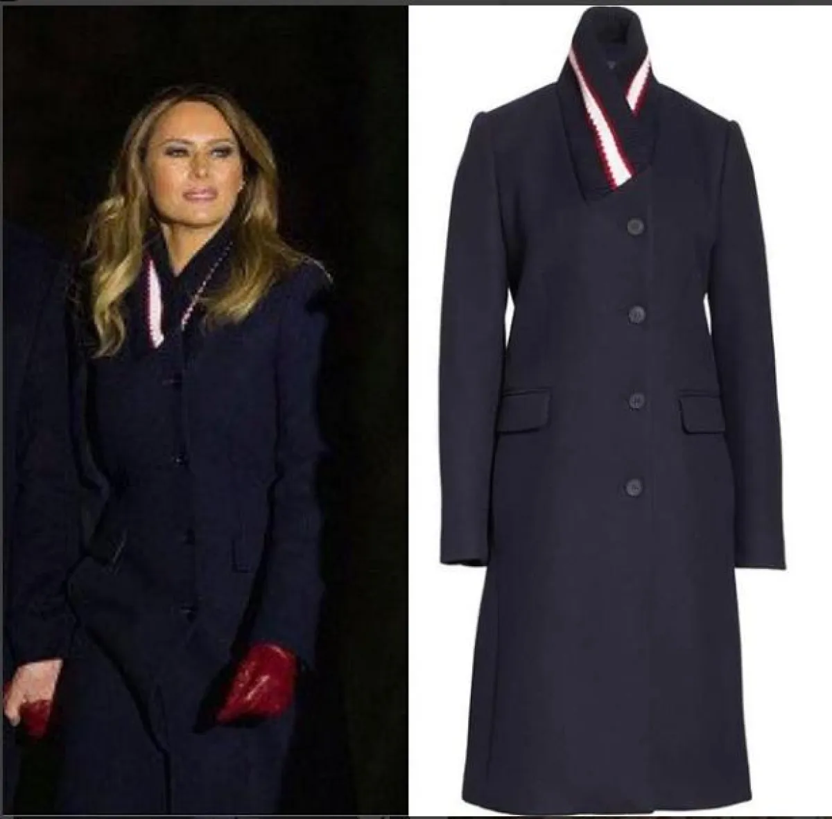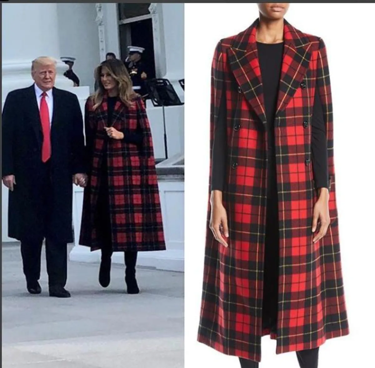 -تألقت ميلانيا خلال استقبالها لشجرة الكريسماس وسط مراسم تقليدية تخللتها وصلات موسيقية تدشن رسمياً احتفالات أعياد نهاية السنة، بمعطف أنيق من ماركة Michael Kors العالمية، وتميز المعطف بتصميمه الجديد وغير التقليدي، وبنقشة الكاروهات التي جمعت بين اللونين الأحمر والأسود، وبلغت تكلفة التصميم 3,995 دولارا أمريكيا.