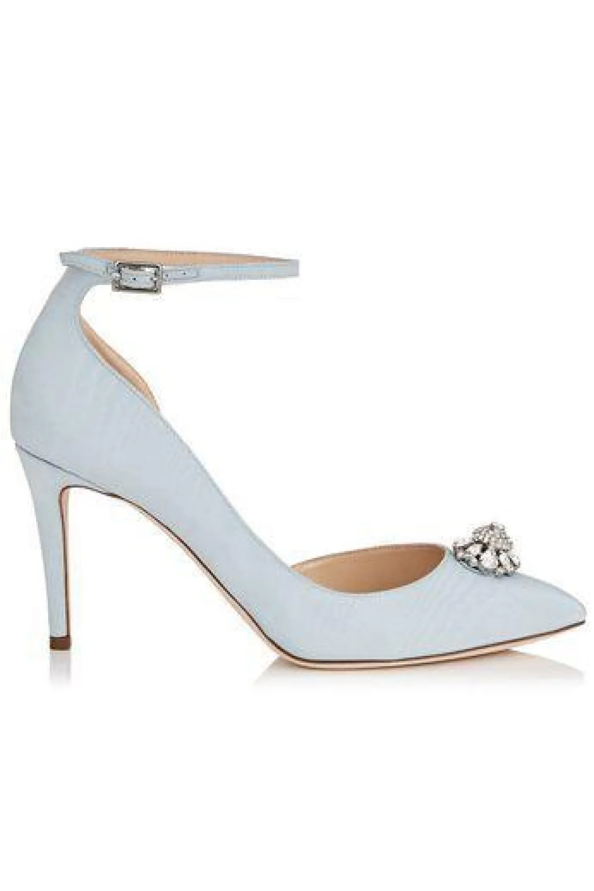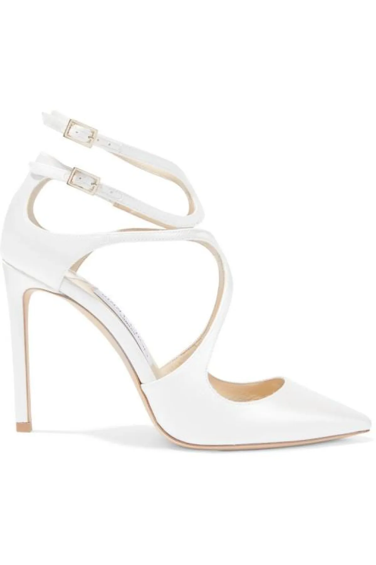 أو يمكنكِ اختيار تصاميم لافتة أكثر كالحذاء من Jimmy Choo من جيمي تشو بربطتيْن للكاحل، تضيف لكِ طولًا وقامة ممشوقة، وتناسبكِ مع الفساتين الطويلة والقصيرة، ومع هذا الستايل من الحذاء ستحرصين على أن تُبرزي جماله حتى ولو كان فستانكِ طويلًا.