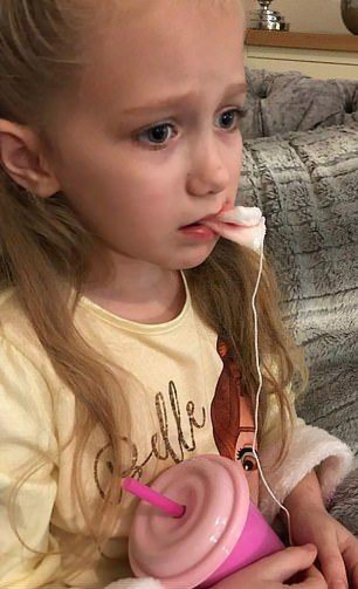 وتابعت «لويس»: إنها أصيبت بصدمة كبيرة عندما شاهدت ابنتها الصغيرة، وهي تتعذب خلال تقيُّئِها كتلاً دموية «بحجم قبضة اليد»، حيث استيقظت الوالدة المسكينة في منتصف الليل، لتجد ابنتها تختنق بهذه الكتل الدموية الكبيرة، وتنزف بشدة بعد 12 ساعة من خلع أسنانها.
