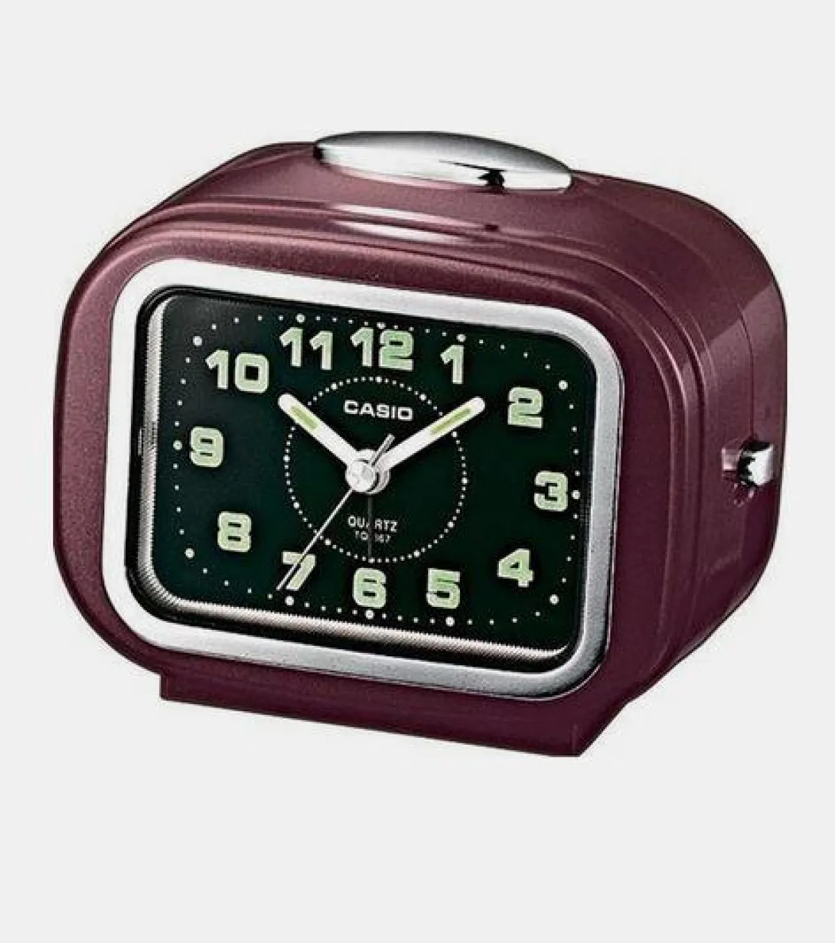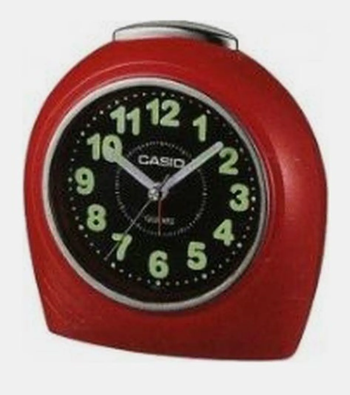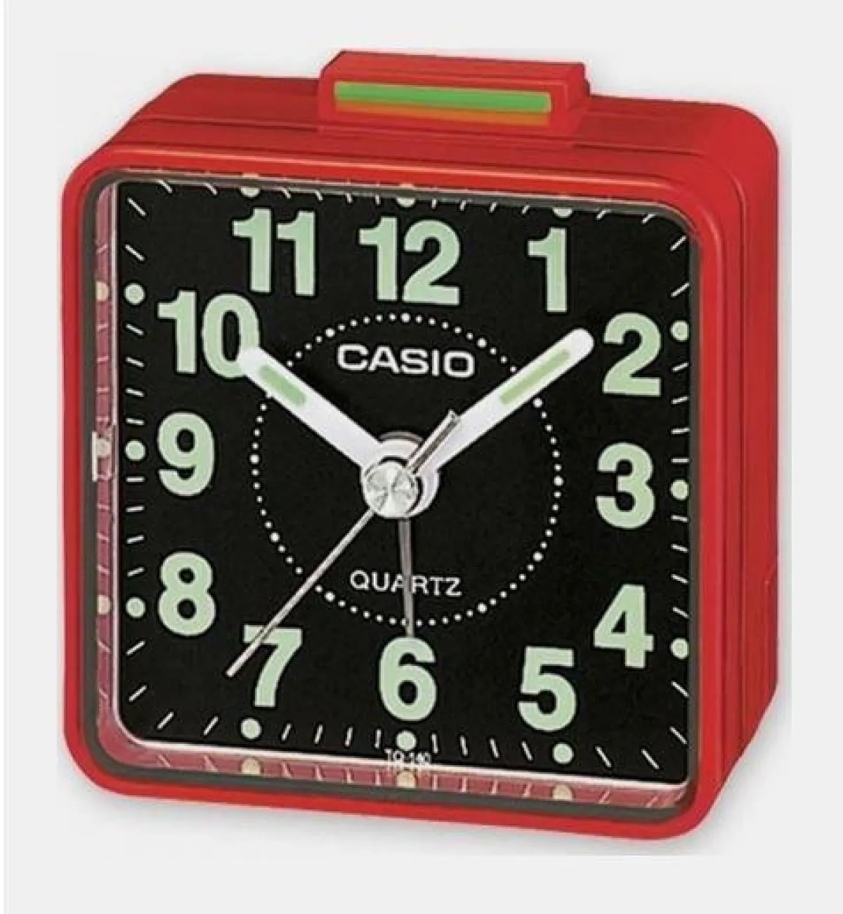 9- ساعة منبه باللون الأحمر بأرقام باللون الأخضر