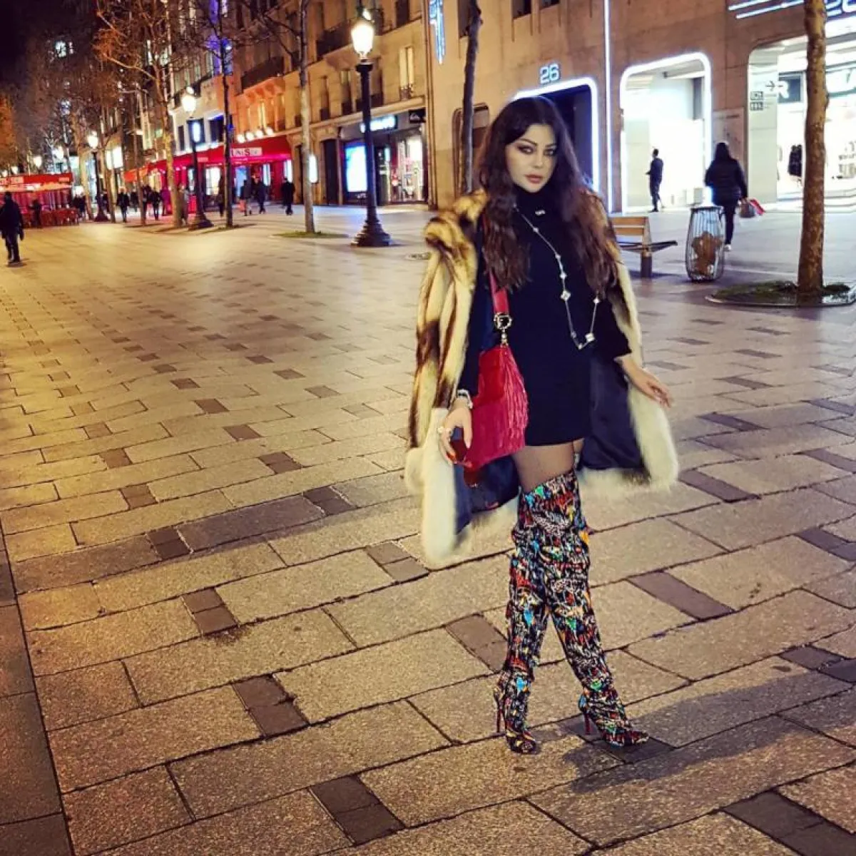 أما الفنانة اللبنانية نيكول سابا، فاعتمدت أسلوباً آخر من البوت البراق؛ حيث اختارت عنقاً يمتد بعد الكاحل فقط، ونسقته مع فستان قصير مطرز بالترتر والمعدن.