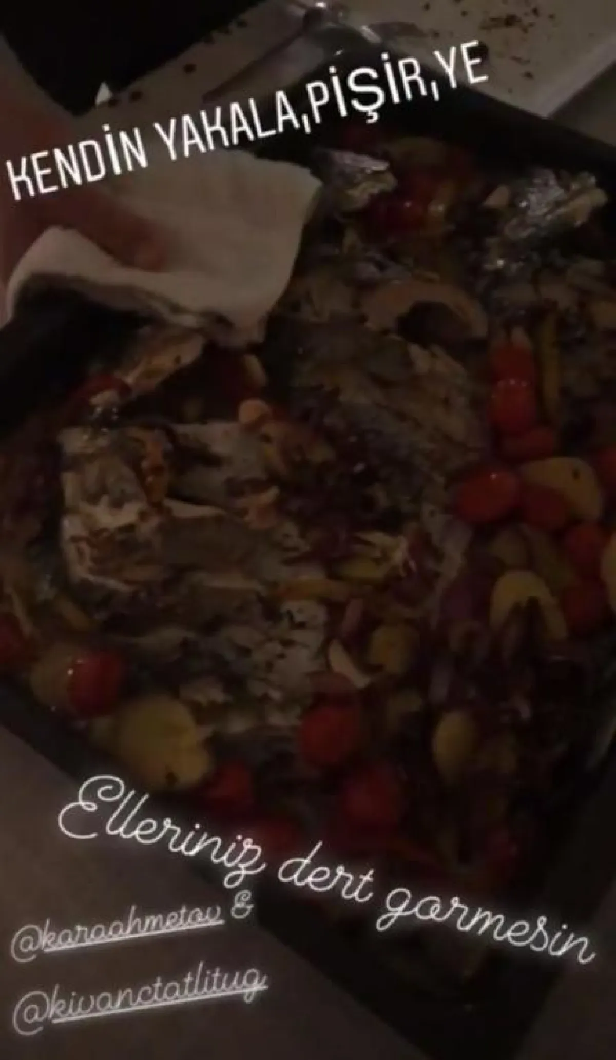 كما نشرت باشاك ديزير صورة أخرى للسمك بعد طهيه في حسابها الشخصي بموقع التواصل الإجتماعي "إنستقرام".