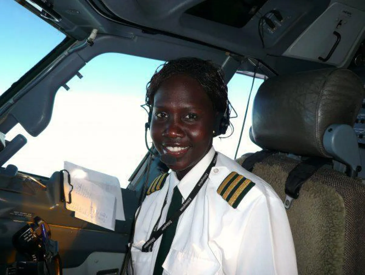 ونشرت الكابتن الجنوبية السودانية ألونجي صورة لها على كابينة القيادة ضمن شركة الطيران الأمريكية "دلتا" على حسابها الشخصي على موقع التواصل الإجتماعي "فيسبوك".