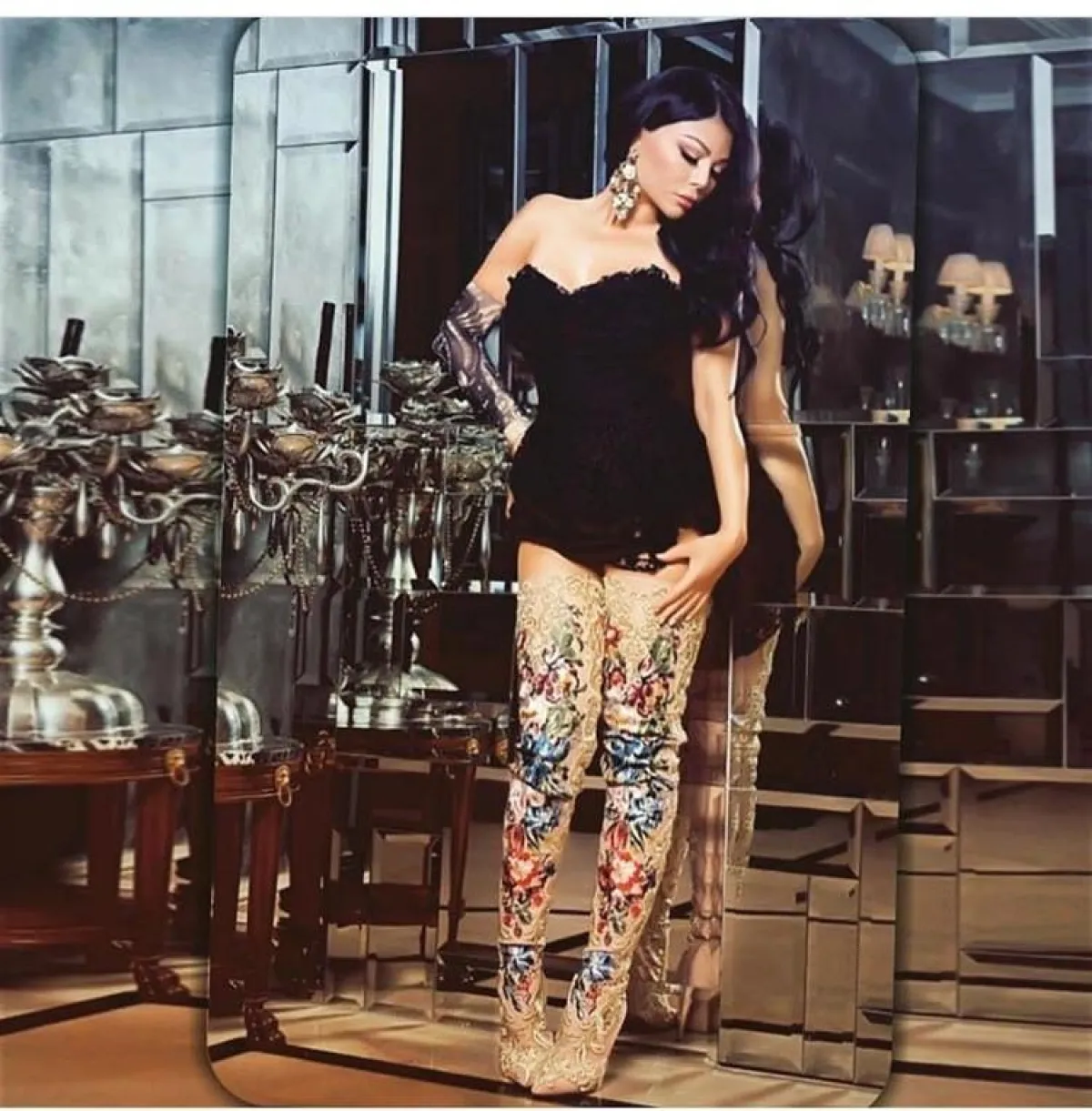 لطالما عبّرت النجمة اللبنانية مايا دياب عن مدى حبها لتصاميم نيكولا جبران، وهو ما ينعكس بشكل أكثر وضوحًا على خياراتها، فقليلًا ما تختار مايا أنامل مصممين آخرين، كـ الفستان الطويل بفتحة الساق الكبيرة، والشق المائل من ناحية الصدر، أو كالفستان الأسود المطرز بـ الدانتيل الناعم الشفاف من ناحية الساق، مع الأكتاف المنسدلة.