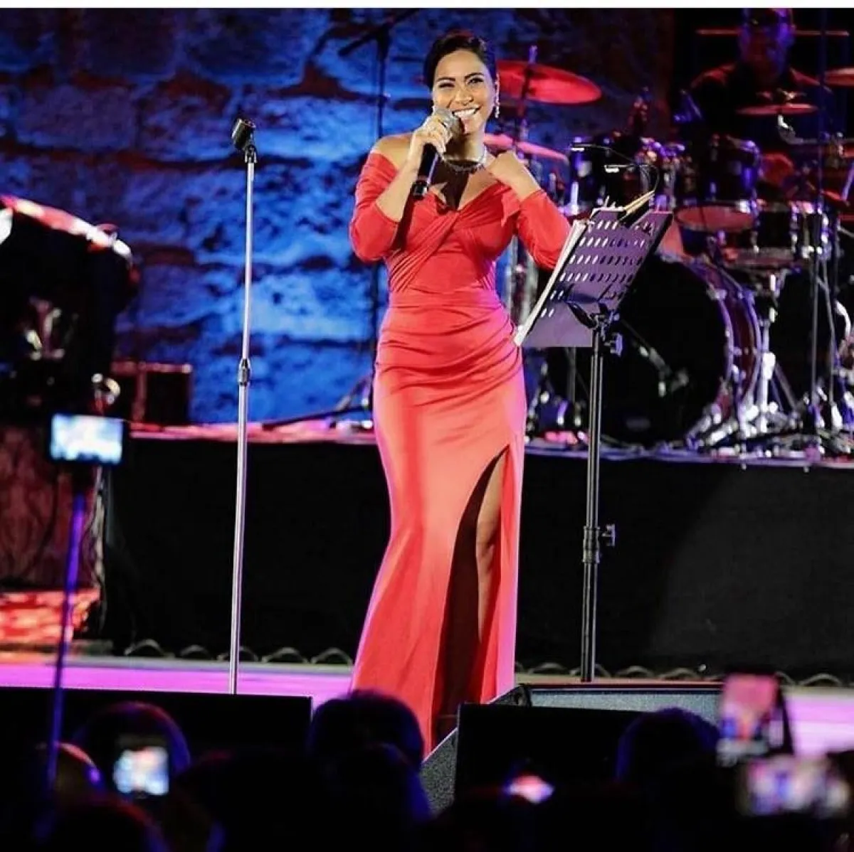 لفتنا كذلك الفستان الأحمر مع الرباط المشدود من ناحية الصدر، بخامة الستان الحريرية، الذي اختارته النجمة شيرين عبد الوهاب، مع شق الساق الجريء، الذي يشتهر به نيكولا بفساتينه، لتُبرز مفاتن المرأة وجاذبيتها.