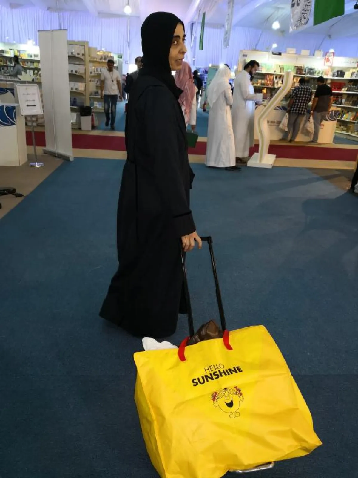 فاطمة المالكي، طالبة دراسات عُليا 30 عاماً، «أبحث في معرض الكتاب عن كتب متخصصة، وفضلت حمل حقيبة سفر صغيرة كي أضع بها كتبي بدلاً من حملها بأكياس أو في يدي، فالمعرض بالنسبة لي فرصة لاقتناء كتب ثقافية مختلفة».