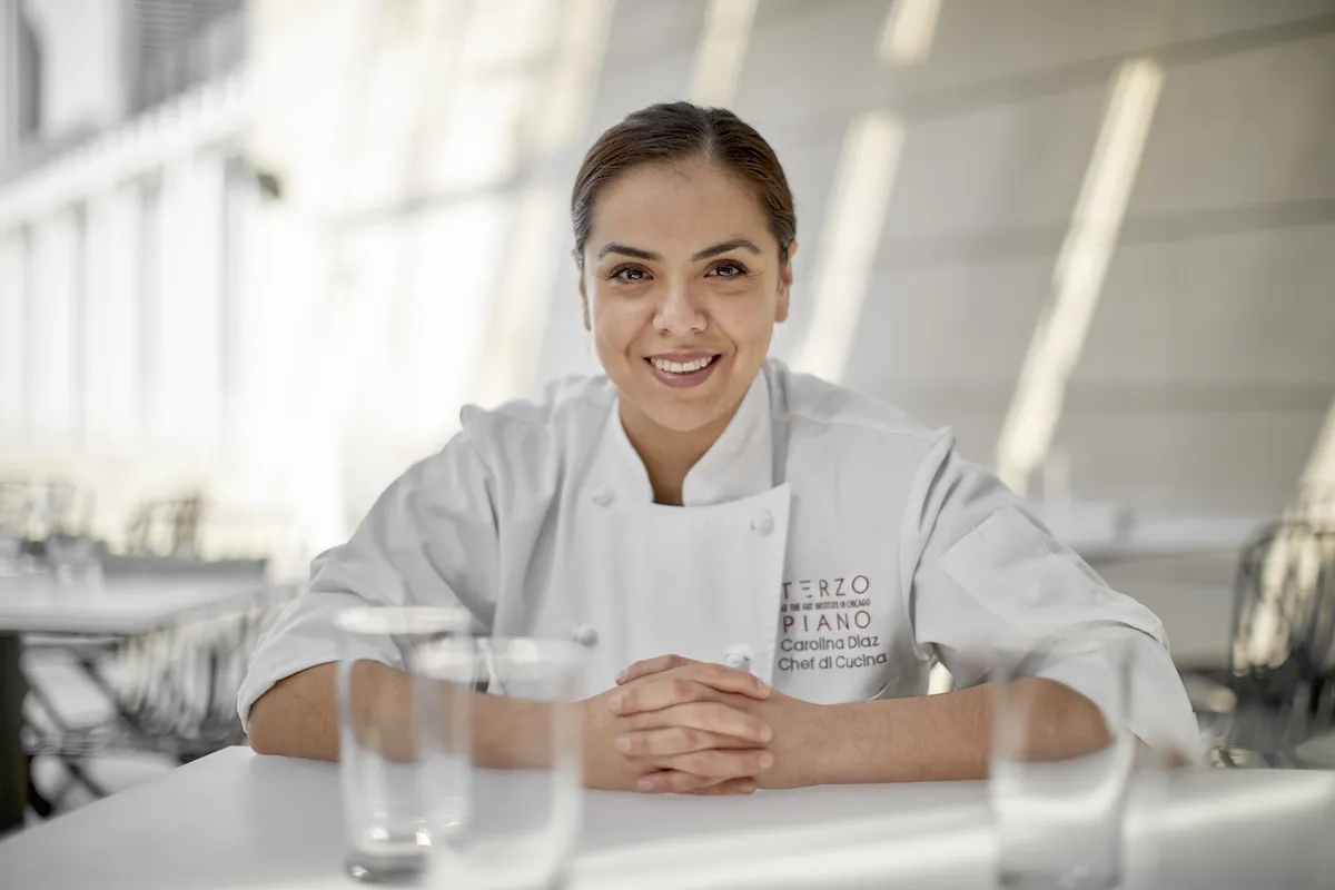 ترعرعت كارولينا في عائلة مكسيكية، وبعد سنوات من عملها كشيف رئيسي، قررت استكشاف الطبخ الإيطالي في عام 2012 لتنضم أخيرًا إلى فريق تيرزو بيانو ومعهد الفن في شيكاغو عام 2016 بصفتها شيف دي كوشينا. تؤمن كارولينا باستخدام منتجات محلية عضوية مستدامة لطبخ أطباق متوسطية لذيذة مع تغييرات غربية وسطى.
