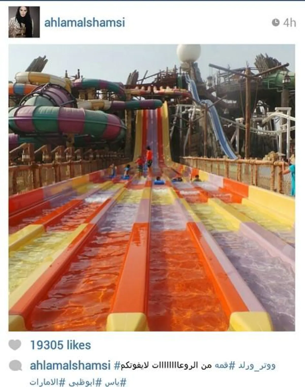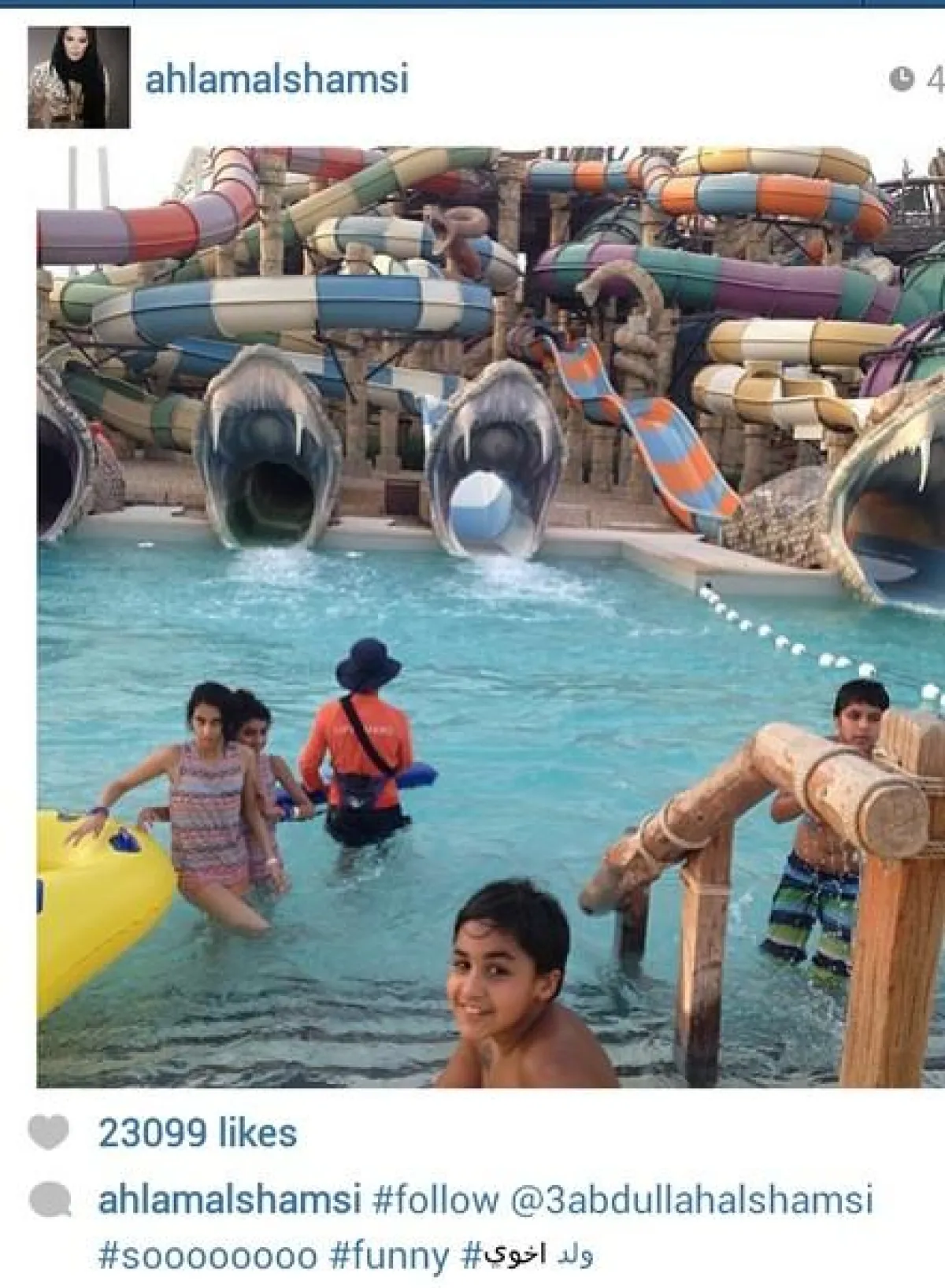 هذا وتستمرّ أحلام بقضاء أجمل الأوقات مع عائلتها في أبو ظبي، بعد فترة من العمل الطويل وإحيائها عدداً من الحفلات. فأحلام لا تنسَ أن تُخصّص وقتاً لعائلتها، حيث اختارت هذه المرّة "ووتر ورلد" للأطفال في أبوظبي. وقد قامت بنشر صورة لابن أخيها عبدالله الشامسي الذي على ما يبدو يستمتع بأوقاته مع أولادها في "ووتر ورلد"، الذي وصفت قسم الأطفال فيه بـ"الروعة".