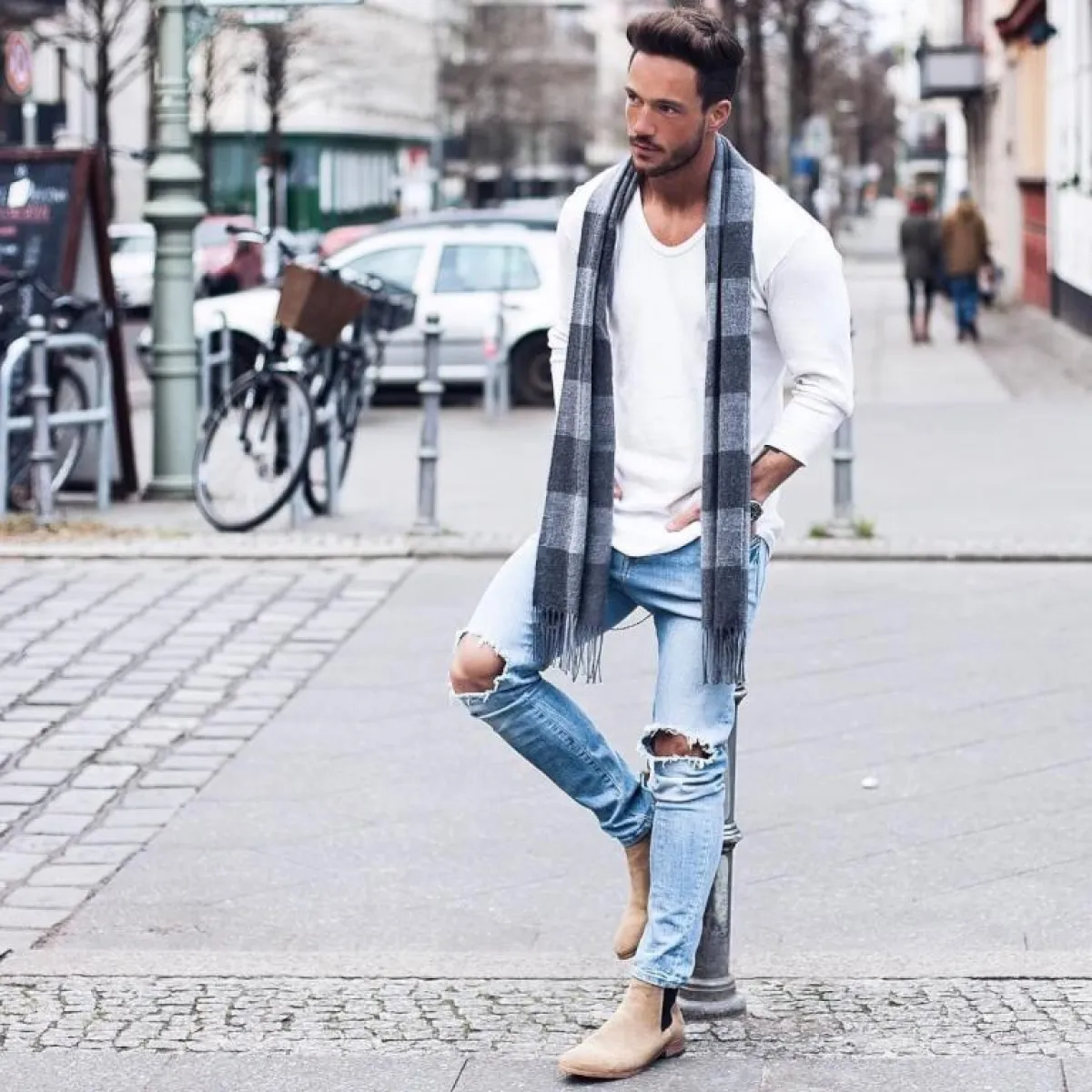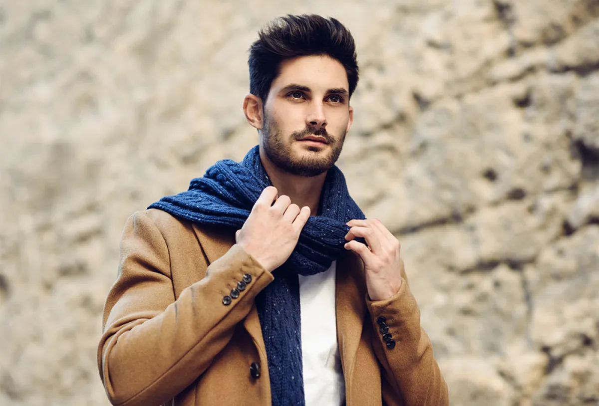 واحدة من أروع اطلالات الشتاء بالنسبة للرجال، هو اعتماد السكارف العريض مع سترة فاخرة وجينز، فهي طريقة عصرية تعزز أناقة الرجل حتى مع اختيار قطع تقليدية من خزانة الشتاء.