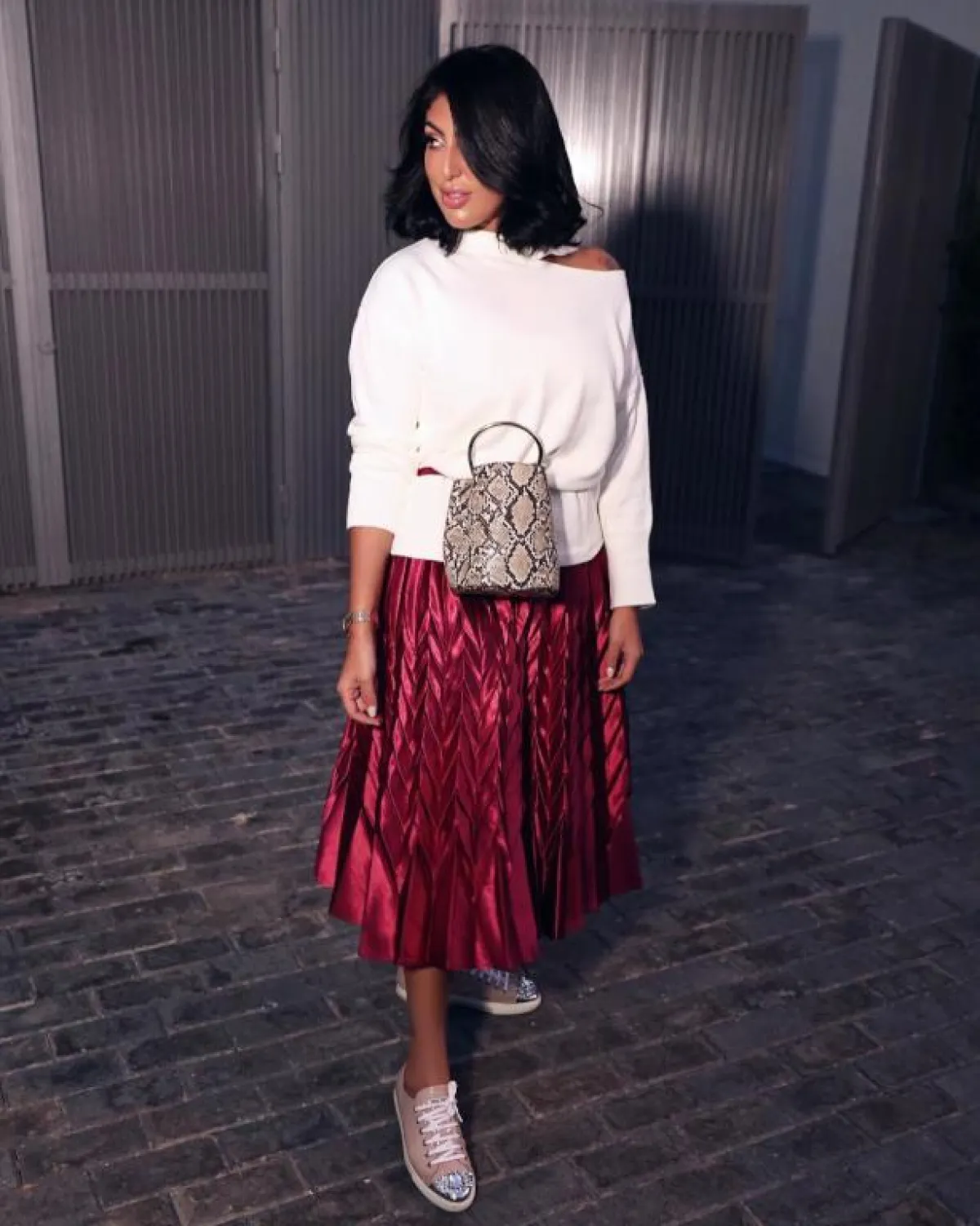 رغم أن المدونة الكويتية دانة الطويرش صاحبة قوام ممتلئ نسبياً، إلا أنها طبقت صيحة الألوان الفاتحة في الشتاء بأسلوب أنيق.