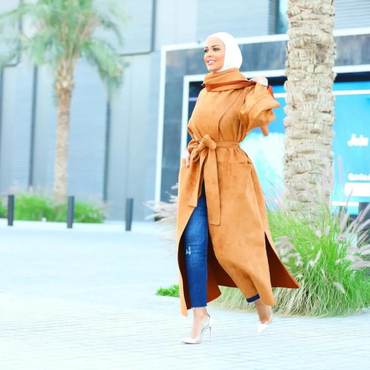ذهبت مرمر إلى معطف أخضر عشبي أنيق ونسقته بأسلوب عصري، لكن اللون الأكثر تكراراً كان البرتقالي، خاصة وأنه لون دافئ يذكرنا بأوراق الخريف المتساقطة، لذلك له انطباع خاص في الطقس البارد.