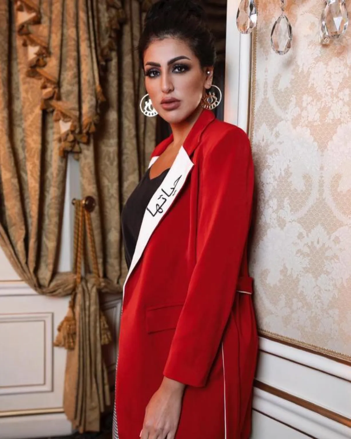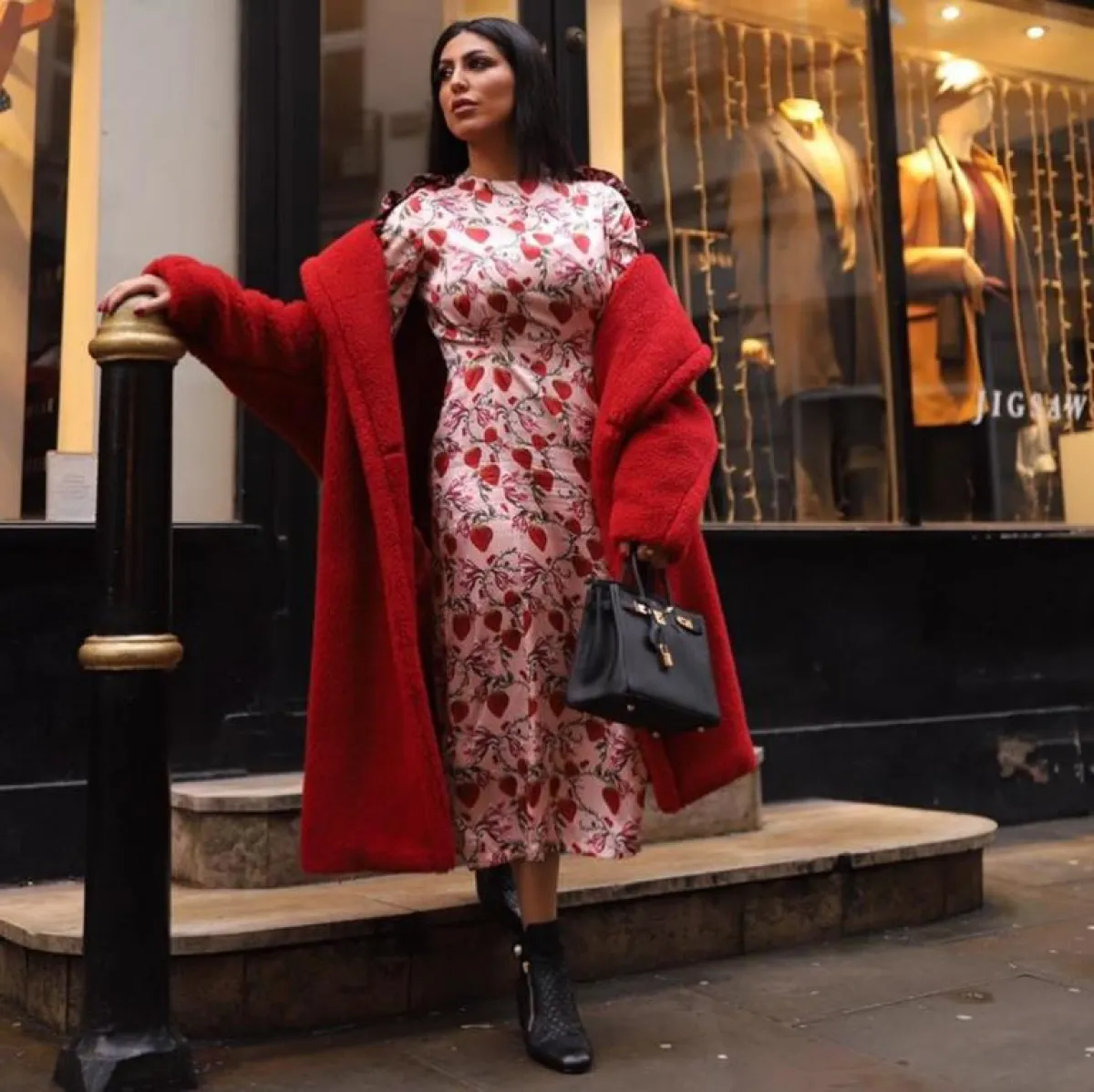 كما اعتمدت ديما الأسدي اللون الأحمر، المفضل لديها، وقد يبدو الأحمر لوناً مألوفاً في الشتاء، إلا أنها ذهبت إلى ظل صارخ لم نعتده في هذا الطقس من قبل.