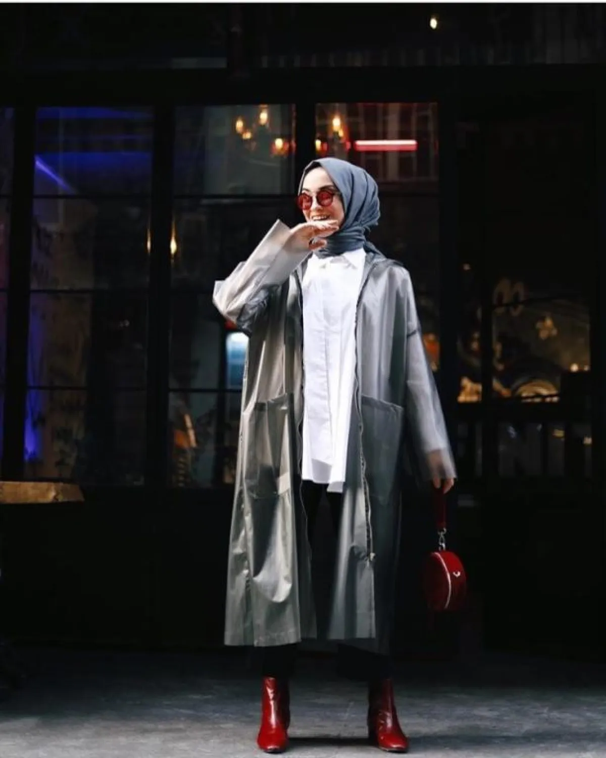 المعاطف الطويلة من القطع التي اختارتها كثير من الفاشينيستات هذا الموسم، كالفاشينيستا سينا سيفير Sena Sever، نسقت معها حذاء الكاحل الأحمر، وشنطة مدورة من اللون ذاته، للوك جريء ، يصلح للصبايا المراهقات.