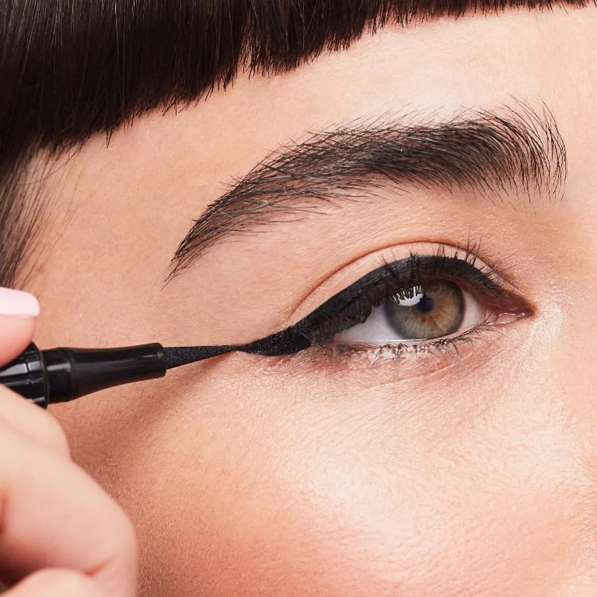 4. الآن وقد انتهينا من تحديد الحاجبين، فلننتقل إلى الآيلاينر! تناولي آيلاينر Roller Liner السائل واستمتعي باستخدامه! تقنيّة التطبيق سهلة للغاية، ما عليكِ سوى البدء برسم الخط المحدد للعين من منتصف خط الرموش إلى الخارج، ثمّ من زاوية العين الداخلية حتى منتصف خط الرموش. بهذه الطريقة ستحصلين على خطّ آيلاينر دقيق ومحدّد تمامًا كما حاجبيك!