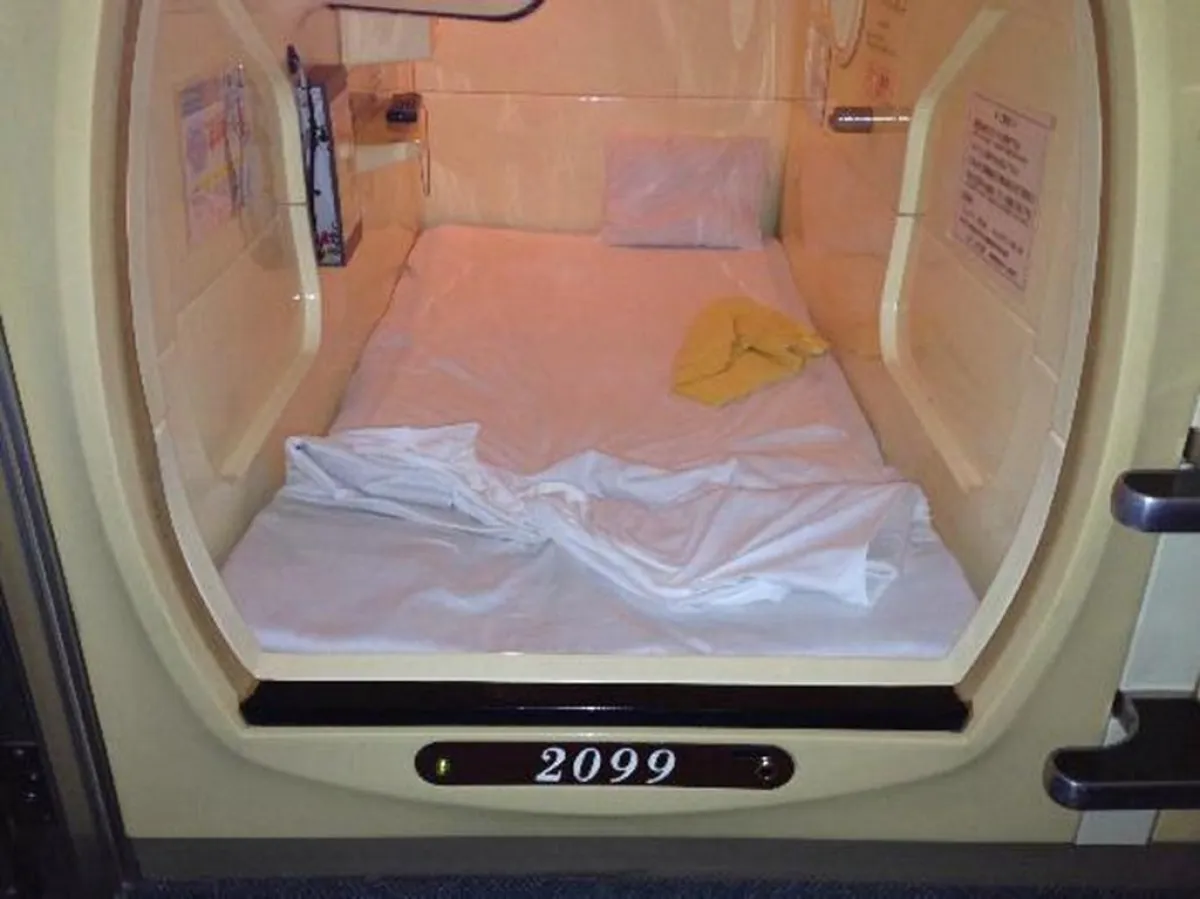 يقع في العاصمة اليابانيّة "طوكيو" ويُعتبر من أكبر فنادقها، وقد صمّم على شكل "كبسولة" تتّسع لشخص واحد. ويضمّ الفندق 630 غرفة مكيّفة، فيها بعض وسائل الراحة، مثل جهاز تلفزيون وراديو وإضاءة، بالإضافة إلى حوض استحمام بالماء السّاخن و"جاكوزي" وحمّامات بخار ومطاعم تقدّم وجبات يابانيّة.