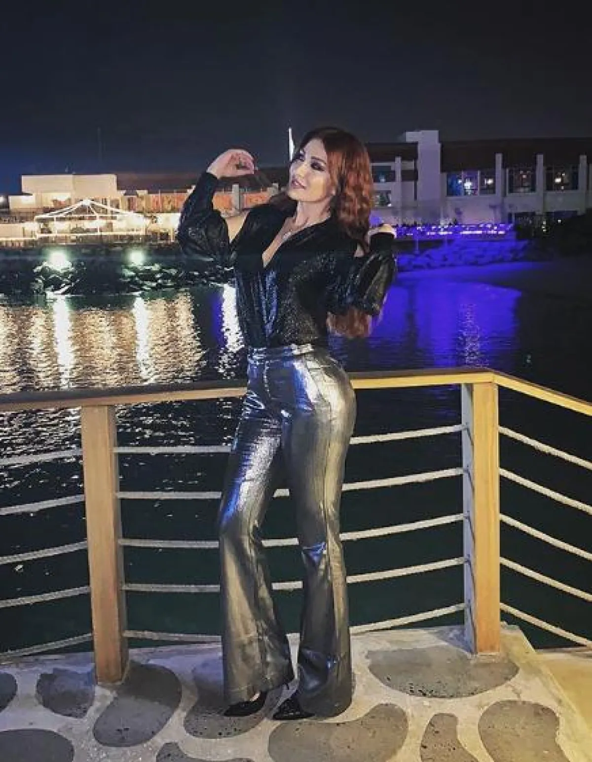 اطلالة عصرية في البنطلون الفضي اعتمدتها هبة نور: