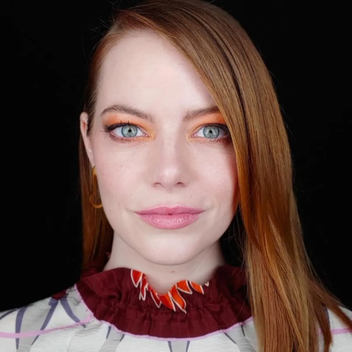 قد تعتقدين ربما أن اللون البرتقالي لا يمكن اعتماده في مكياج العيون، لكن آن الأوان لتجربة هذا اللون في الحصول على مكياج جذاب ولافت للأنظار، من خلال اعتمادك مكياج عيون برتقالياً مضيئاً على طريقة النجمة إيما ستون، مترافقاً مع لمسة ناعمة من الظلال الذهبية والبرونزية الخفيفة. وأكملي طلتك بأحمر الشفاه الوردي اللامع.