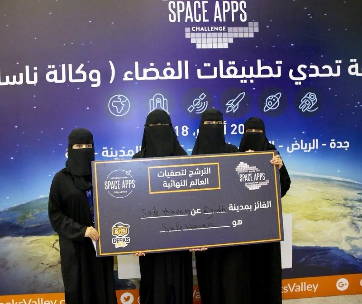 ويهدف المشروع الفائز Safe Haven إلى مساعدة اللاجئين والمشردين في أنحاء العالم، الذين يقطنون في المخيمات المنظَّمة وغير المنظَّمة، حيث يقوم التطبيق بتحليل الظروف البيئية والجوية المحيطة بالمخيمات لتحديد احتياجاتهم ومشاركتها مع المتطوعين والمؤسسات الخيرية، ما يضمن سهولة الوصول إليهم وتوفير تلك الاحتياجات.