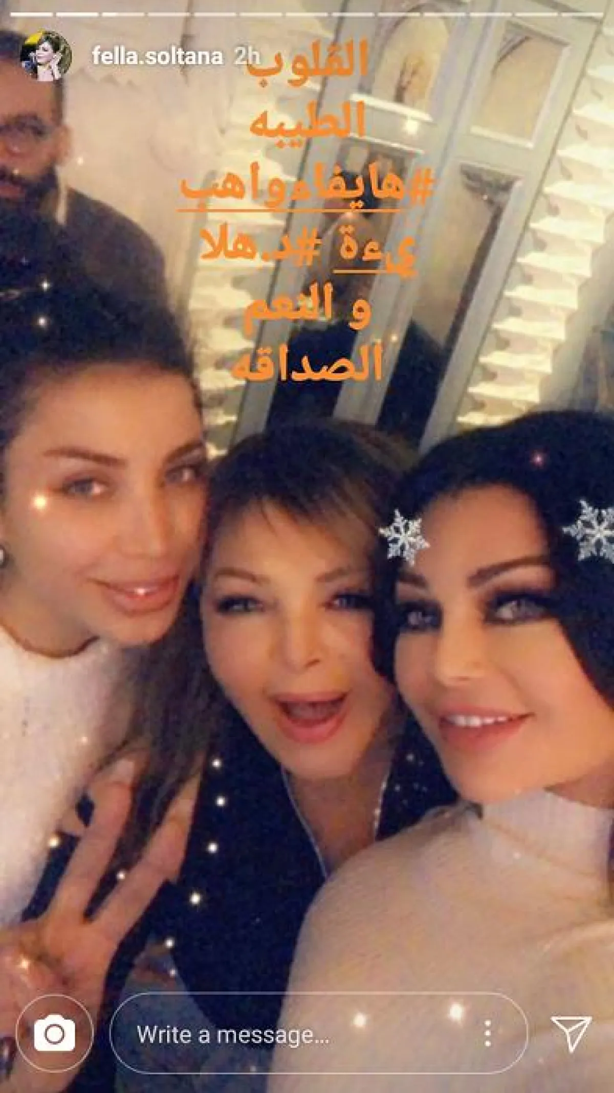 خلال حضورها حفل ميلاد إحدى صديقاتها في بيروت، بادرت الفنانة هيفاء وهبي إلى مصالحة الفنانتين لطيفة وفلة الجزائرية اللتين كانتا أيضاً من بين المدعوين إلى الحفل.