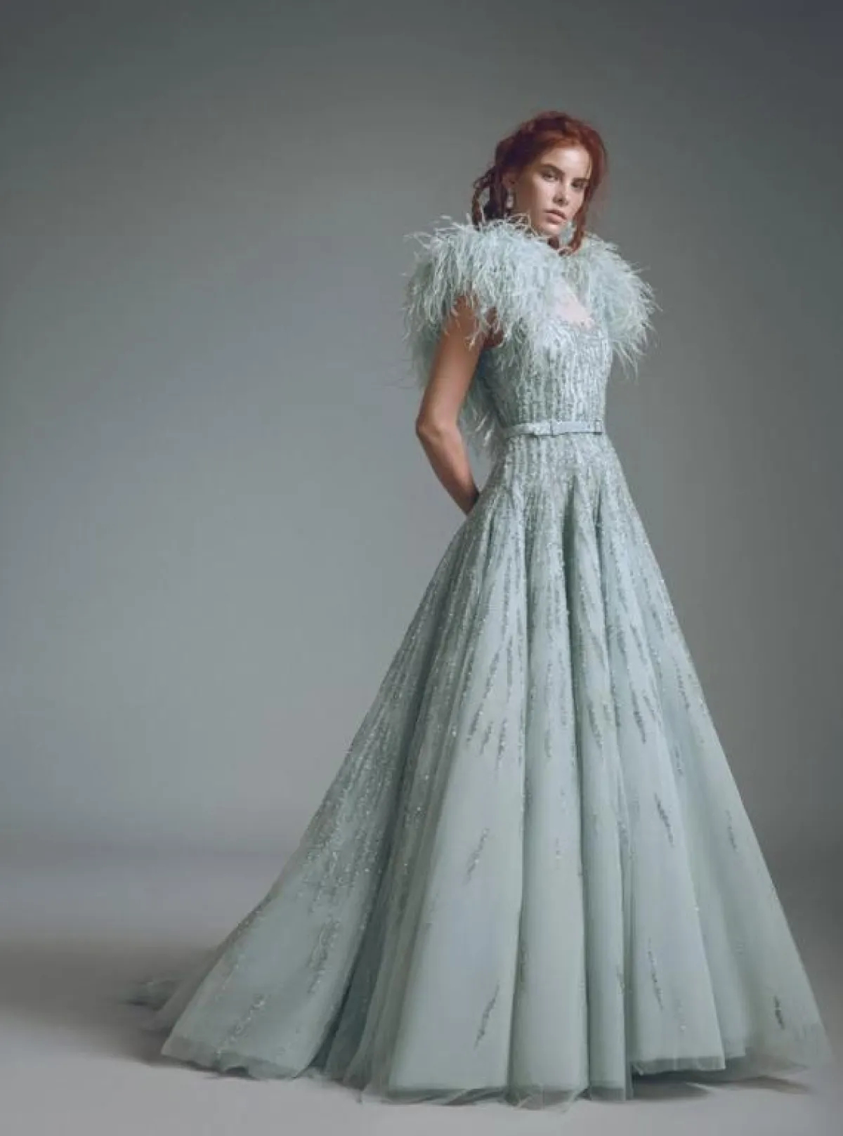 للـ عروس التي تبحث عن إطلالة فاخرة في يوم الخطوبة، نرشح لكِ إختيار فستان مزين بالريش، فهي صيحة رائجة وتضيف لمسة مبهرة للفساتين.