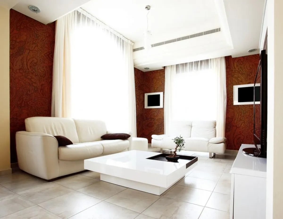 3- يضفي ورق الجدران جمالاً على ديكور الصالون بصورة أكبر من الطلاء.