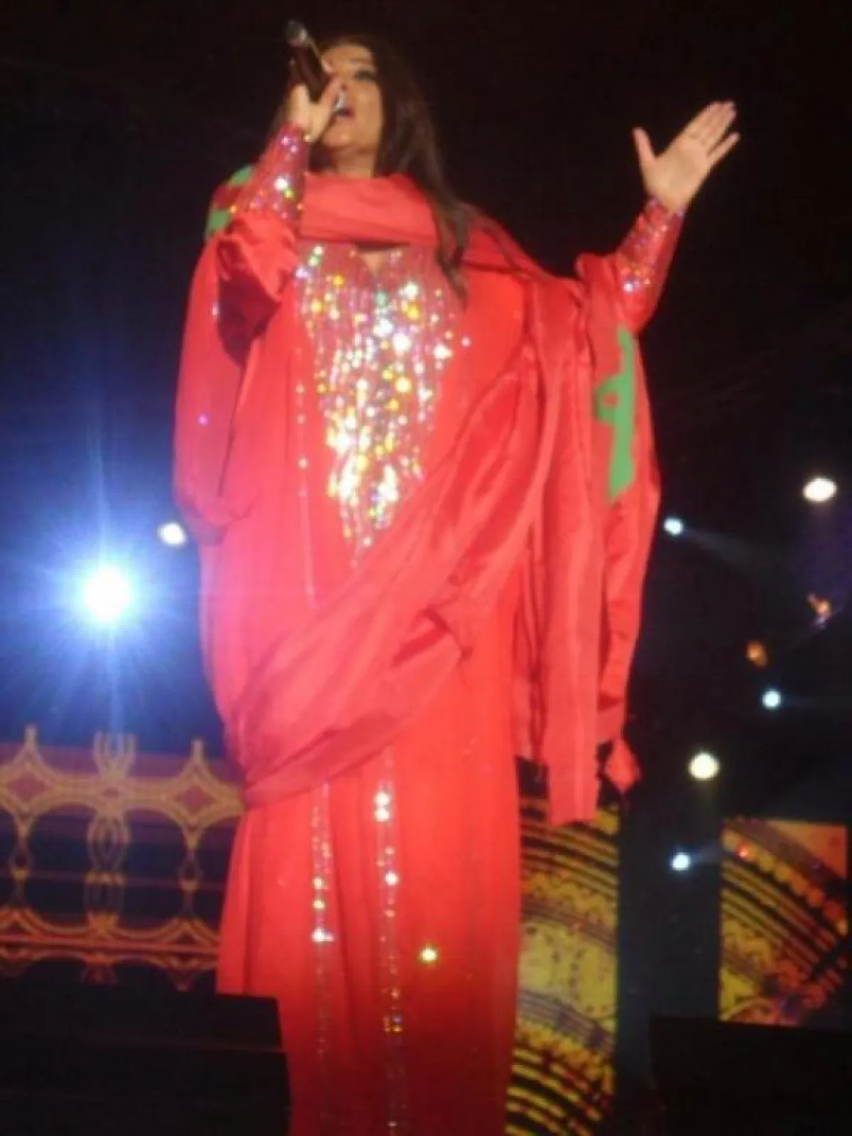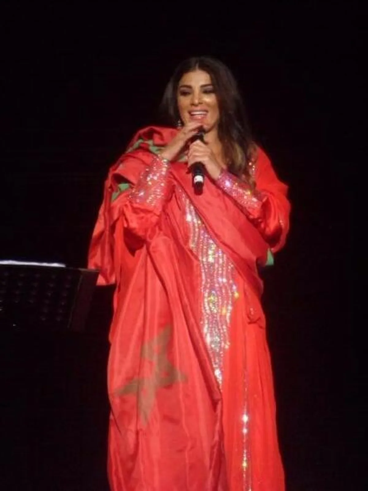 وقد تألقّت حايك بالقفطان المغربيّ المنقوش باللون الأحمر, فيما التفّت بالعلم المغربي, حيث قدّمت خلال الحفلة مجموعة من أغانيها القديمة والجديدة، منها "على أيامك, أنا من دونك لا, درب الهوى, حبيبي الغالي, الشوق, سحر الغرام, ليه حنضيع, واحشني اكتر, تخيل", إضافة إلى أغنيتها السنجل الجديدة "تركني حبك"، التي تغنّت بها للمرّة الأولى في المهرجان.