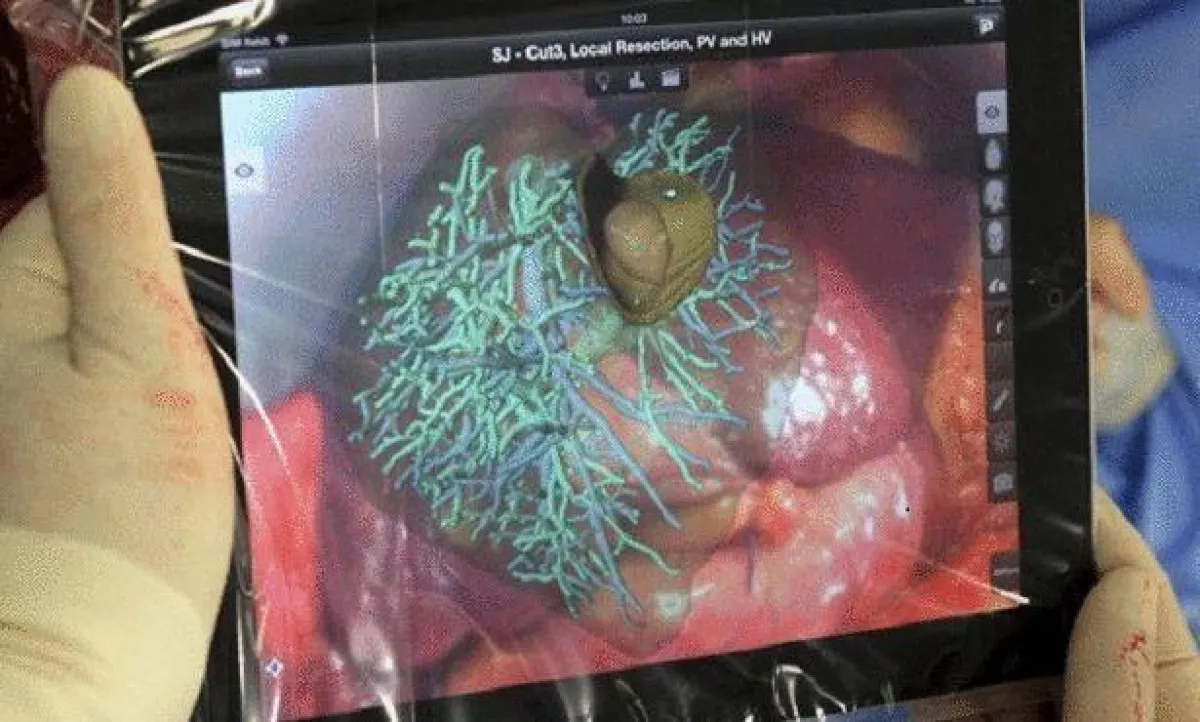 أجرى الجراح الألماني "كارل أولدهافر" عملية استئصال أجزاء مصابة من كبد مريض بدقة بالغة، مستخدما تقنية الواقع المعزز على تطبيق "آيباد"، وبمساعدة الصور ثلاثية الأبعاد، بعد أن التقاط صوراً لكبد المريض بكاميرا الحاسب اللوحي واستخدم التطبيق لصنع خريطة ثلاثية الأبعاد للكبد والمنطقة المحيطة بها، تسهل له تحديد الأجزاء المصابة. لتكون المرة الأولى التي يتم فيها استخدام الأجهزة الذكية في غرف العمليات.