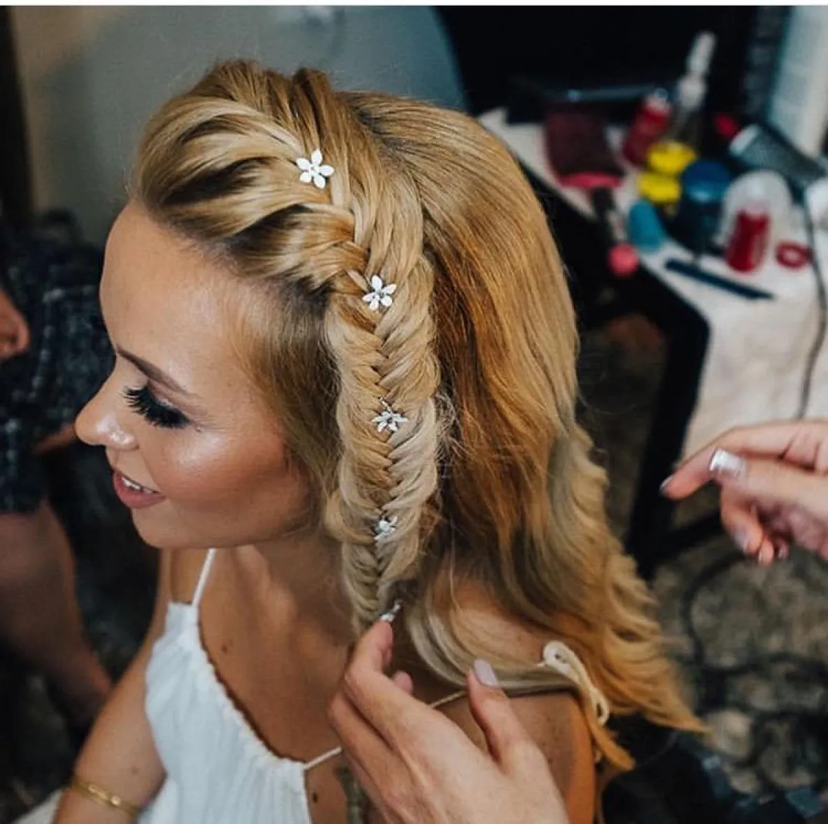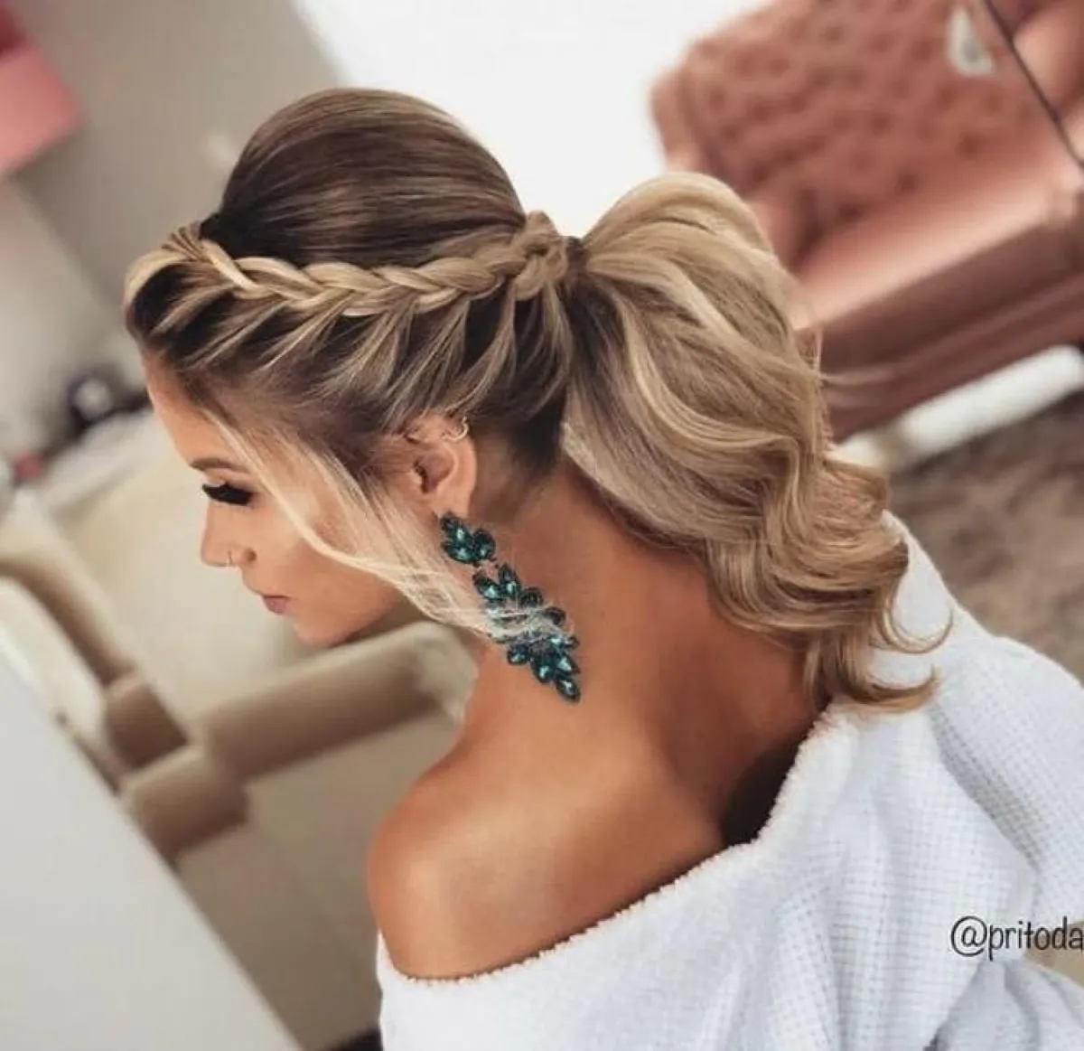 أو يمكنكِ اعتماد الضفيرة نفسها، بأن تسحبيها من فروة الرأس، وترفعيها بالكامل كذيل حصان، وتنسقي معها أحد اكسسوارات الشعر على أيّ الجانبين، لاطلالة ساحرة.