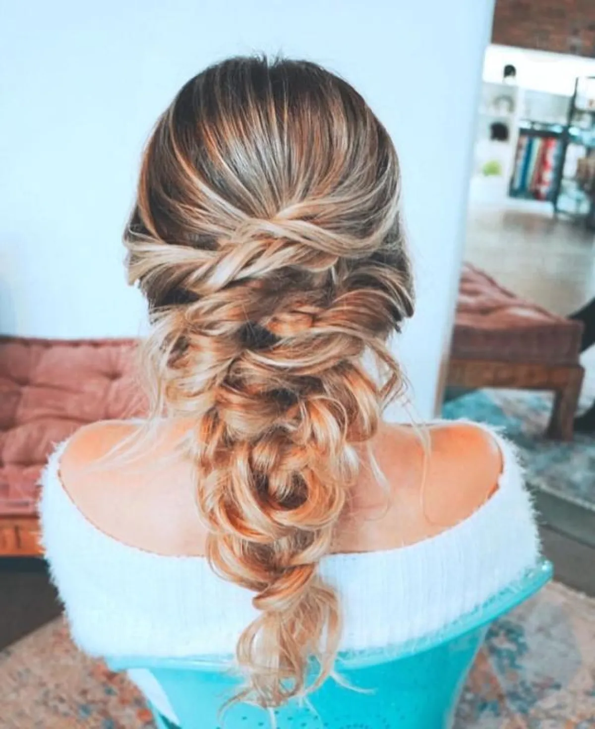 لفتنا كذلك ضفيرة الشعر الملفوفة من أحد جانبي الشعر، وكأنها طوق للرأس بشكل انسيابي وناعم، تناسب أكثر الشعر المصبوغ والملون.