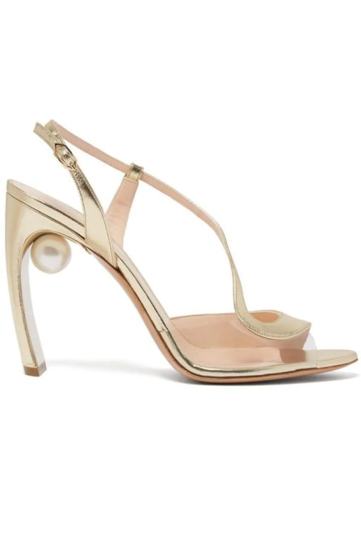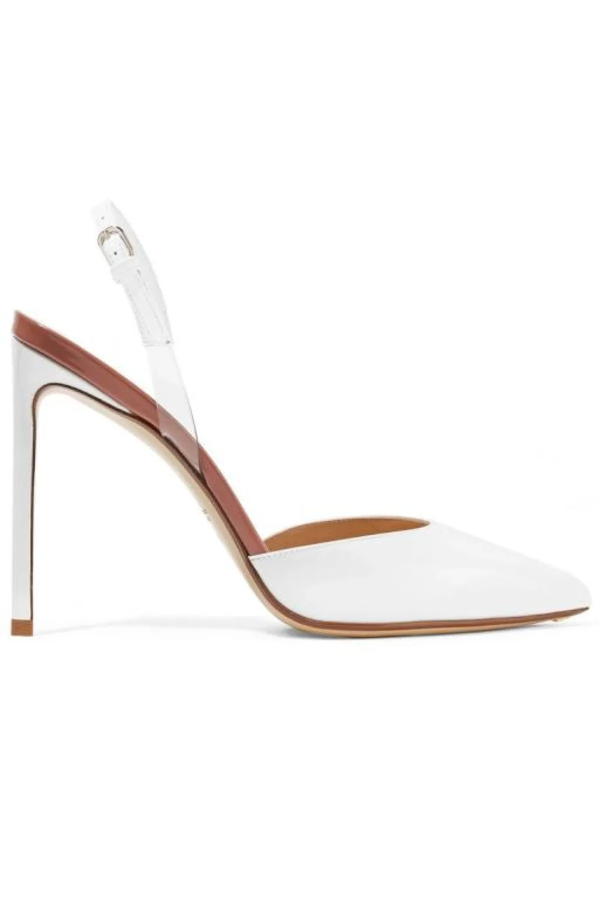 ولكن إن كنتِ تفضلين الكعب العالي الرفيع، فقد أعجبنا هذا الحذاء من Valentino فالنتينو مع تصميمه الانسيابي على القدم، يضيف لكِ طولًا ونحافة، ويناسب درجات فستانكِ الأبيض مهما كانت.