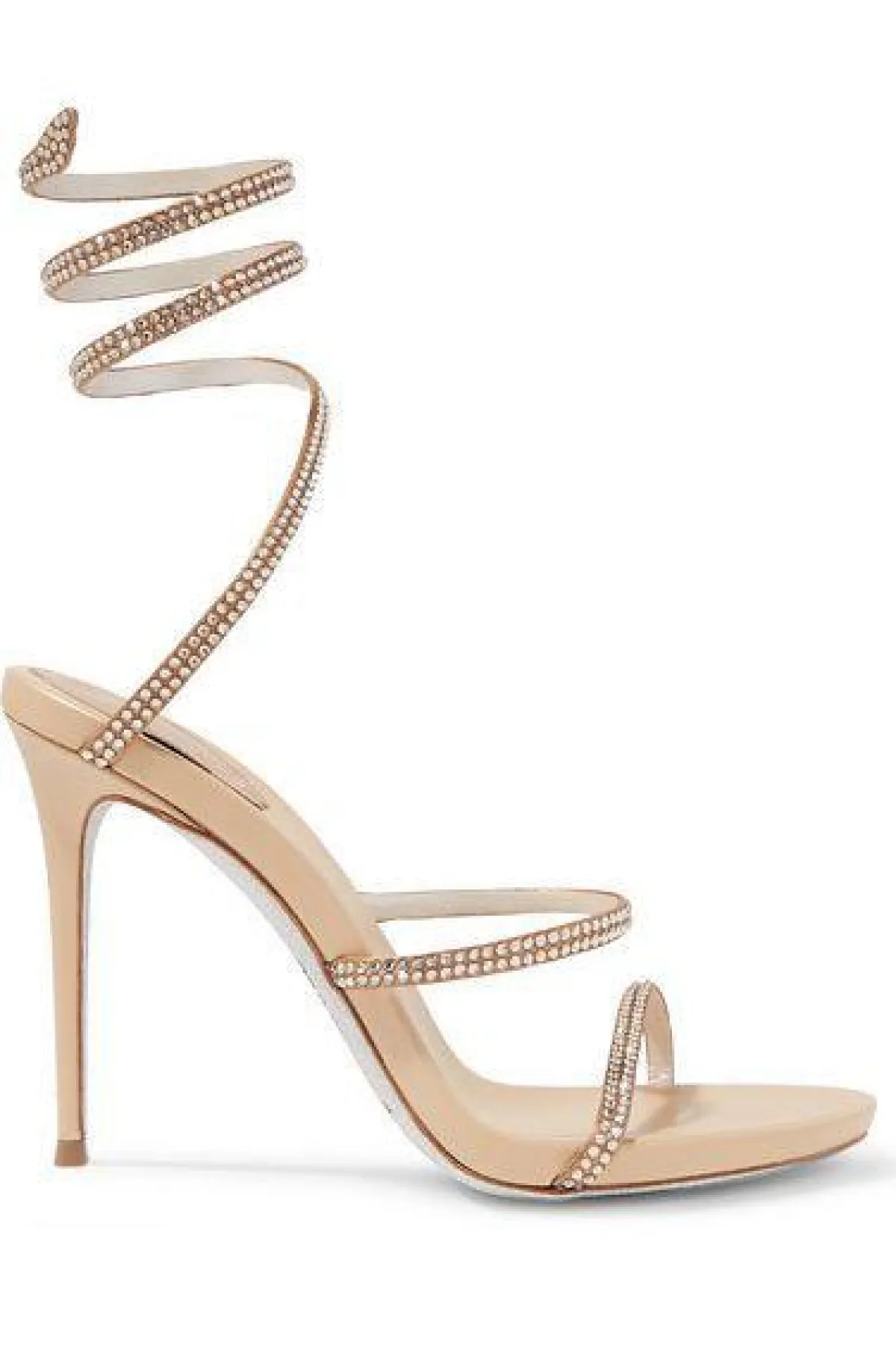 إذا كنتِ ترغبين في أن تضيفي بعض الطول لمظهرِك، كما أنّ لون الحذاء ستُبرزين شكله مع الفساتين القصيرة مثلًا، فلِمَ لا تختارين هذا الحذاء العصري من René Caovilla مع رباط الكاحل الملتوي على الساق.