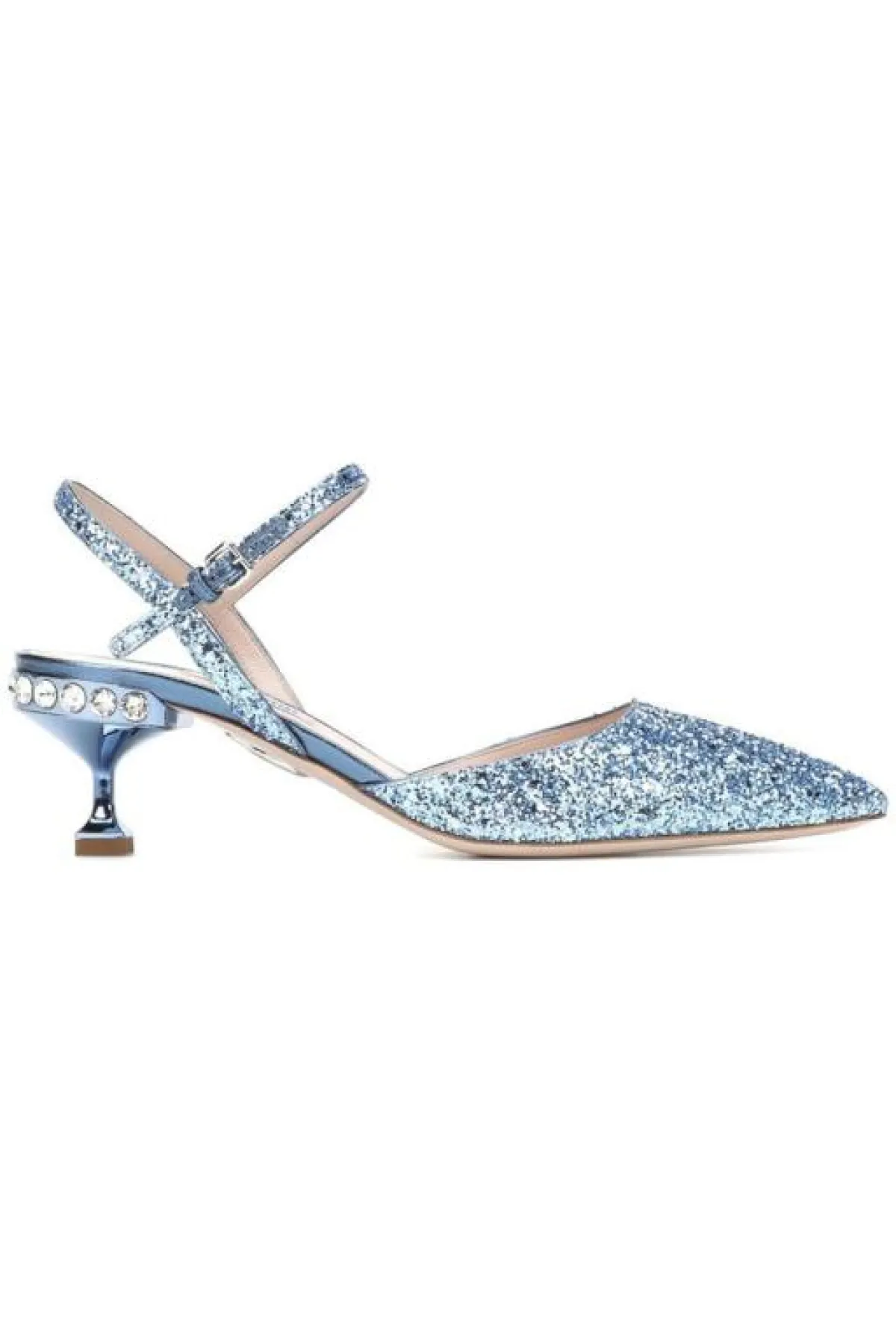 لفتنا كذلك هذا اللون بدرجة البيبي بلو المخملية من Jimmy Choo ميو ميو مع رباط الكاحل الأنثوي، ومثل هذه القطعة سترتدينها مع ملابسكِ العادية، فلن تبقى بخزانتكِ طوال الوقت أبدًا، فهي رائجة وكلاسيكية وتناسب الكثير من القطع لديكِ.