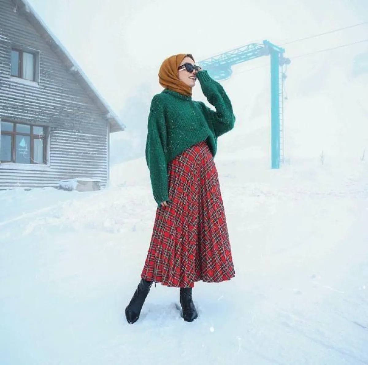 -تربعت التنورة بطبعة المربعات على عرش الموضة ولتتناسب مع أجواء الإحتفالات بالعام الجديد أختاريها باللون الأحمر ونسقيها مع كنزة صوف قصيرة باللون الأخضر.