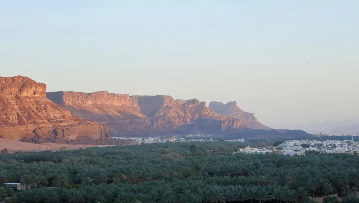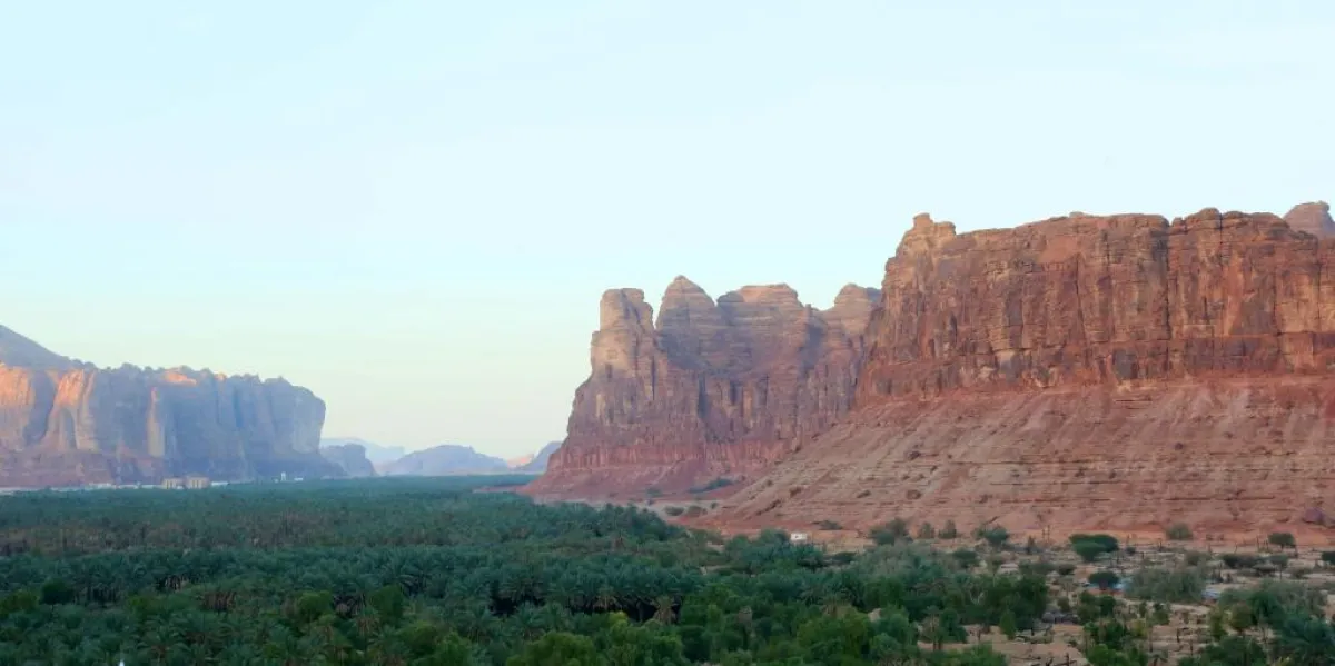 تقع مدينة العلا بين جبلين كبيرين على واد خصب التربة تزرع فيه النخيل والحمضيات والفواكه كما تتوفر المياه الجوفية على مسافات قريبة رغم الشح الكبير في الأمطار وذلك بسبب طبيعة الصخور الرسوبية.
